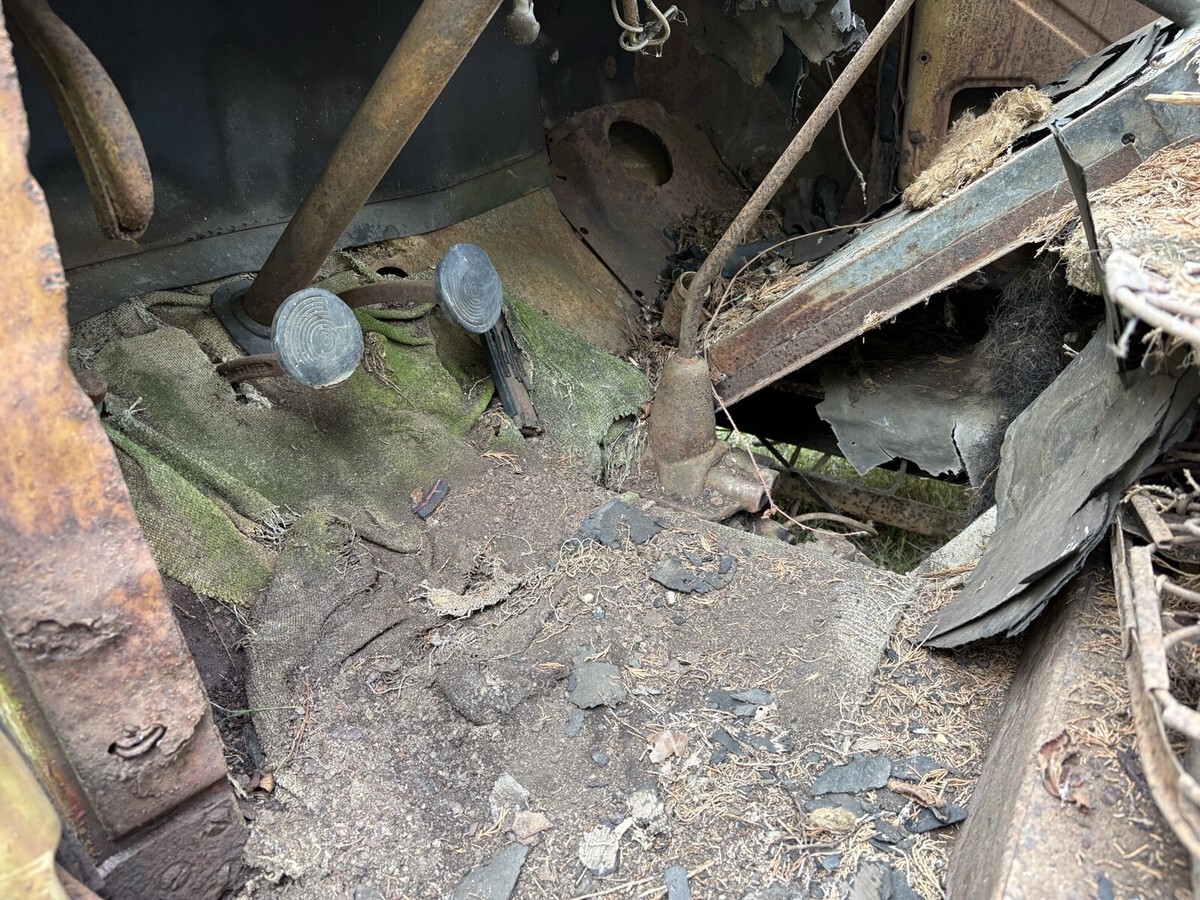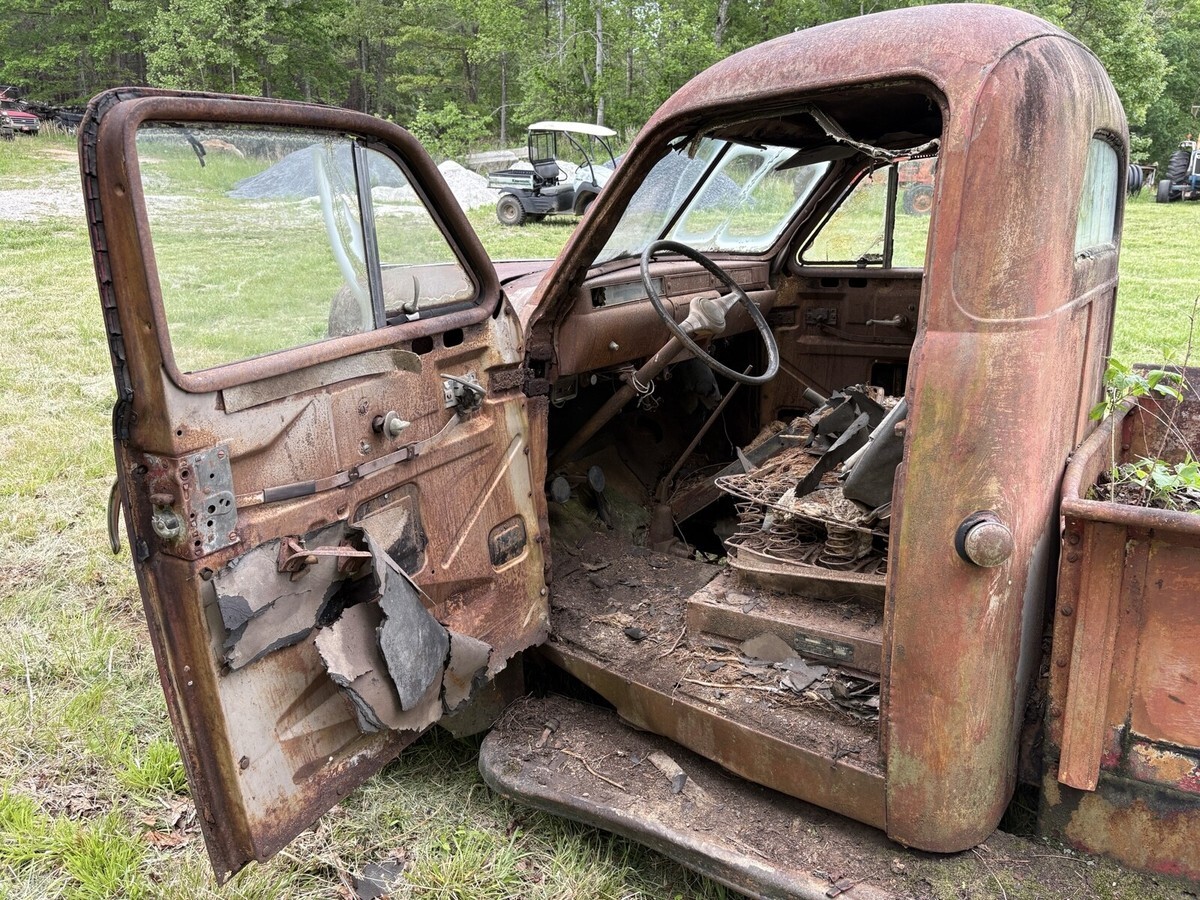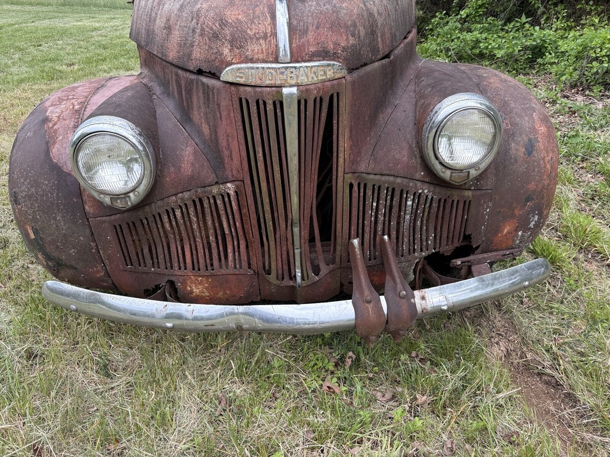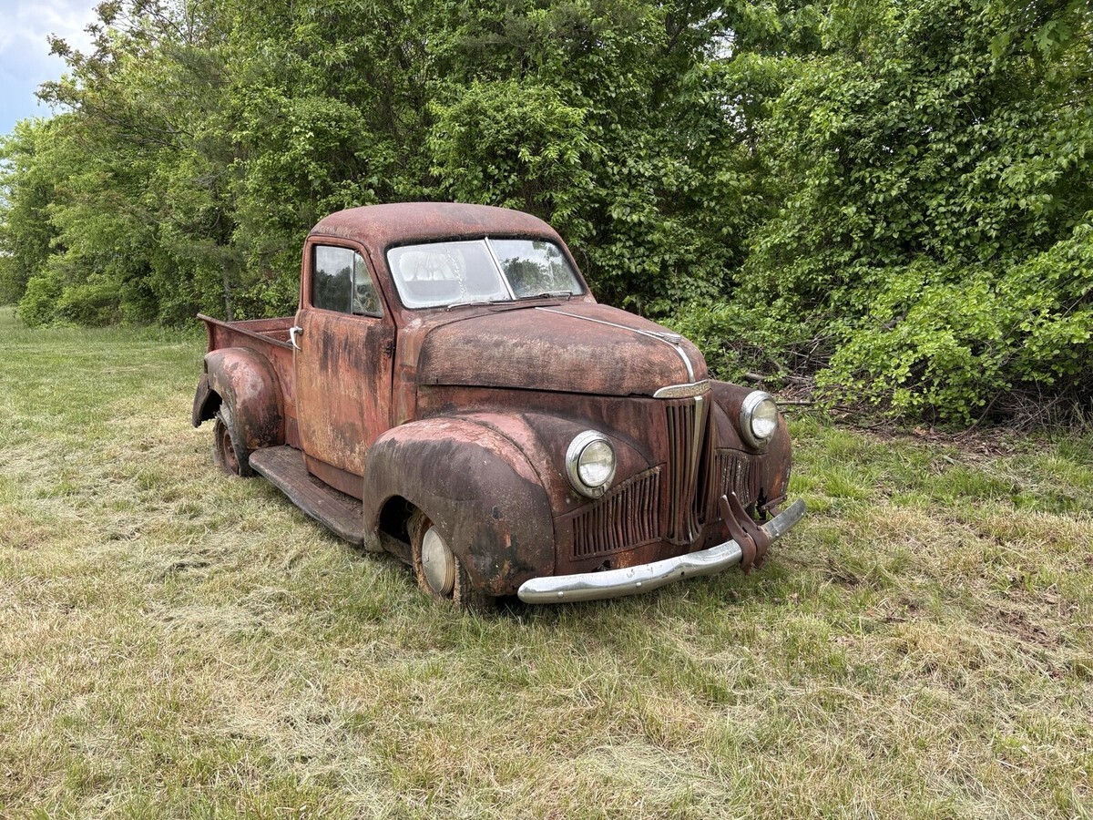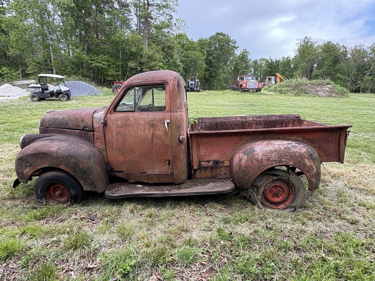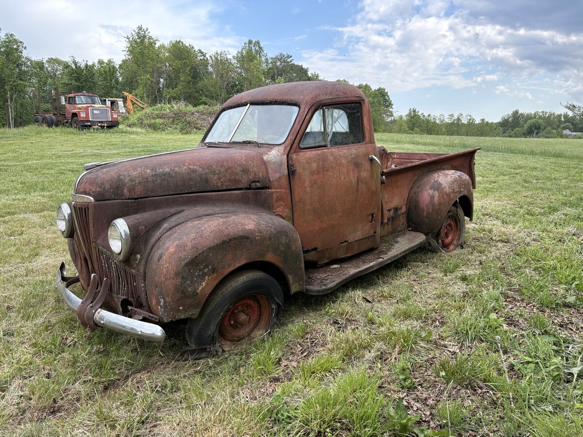 This 1946 Studebaker M5 Pickup has been in a pasture for 50+ years, it has accumulated plenty of rust, the tires are rotted. It has the radiator inside the cab. And it has a good clean title.