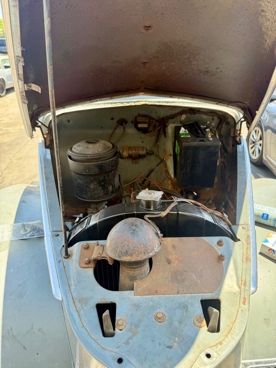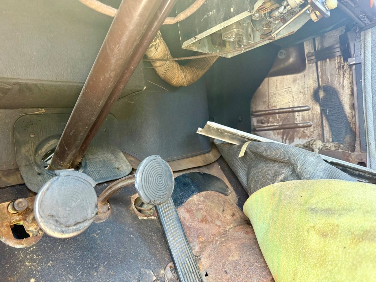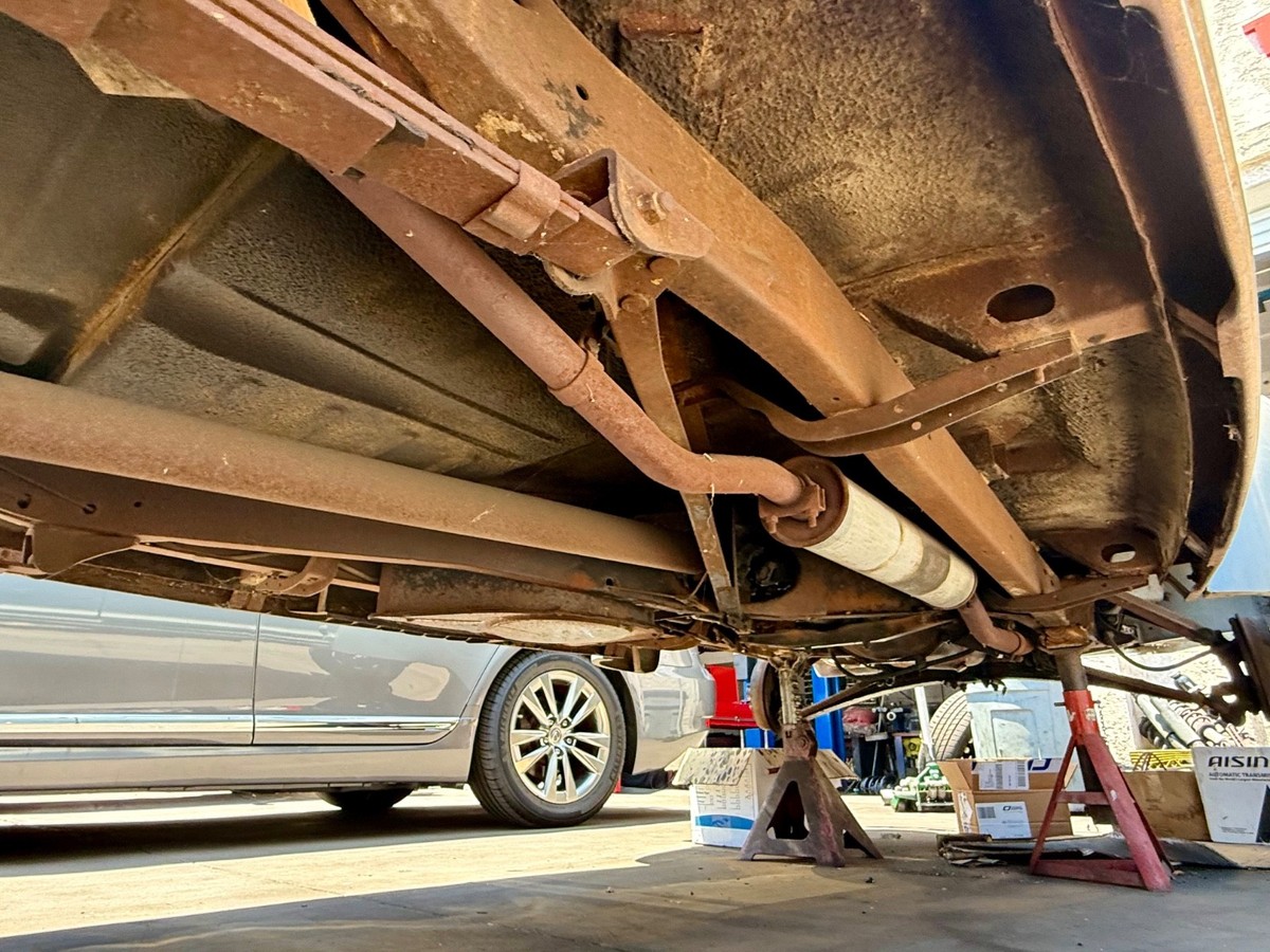 - Undercarriage: The photos show the frame and underpinnings, which appear solid for their age but do have surface rust as would be expected from a barn find.