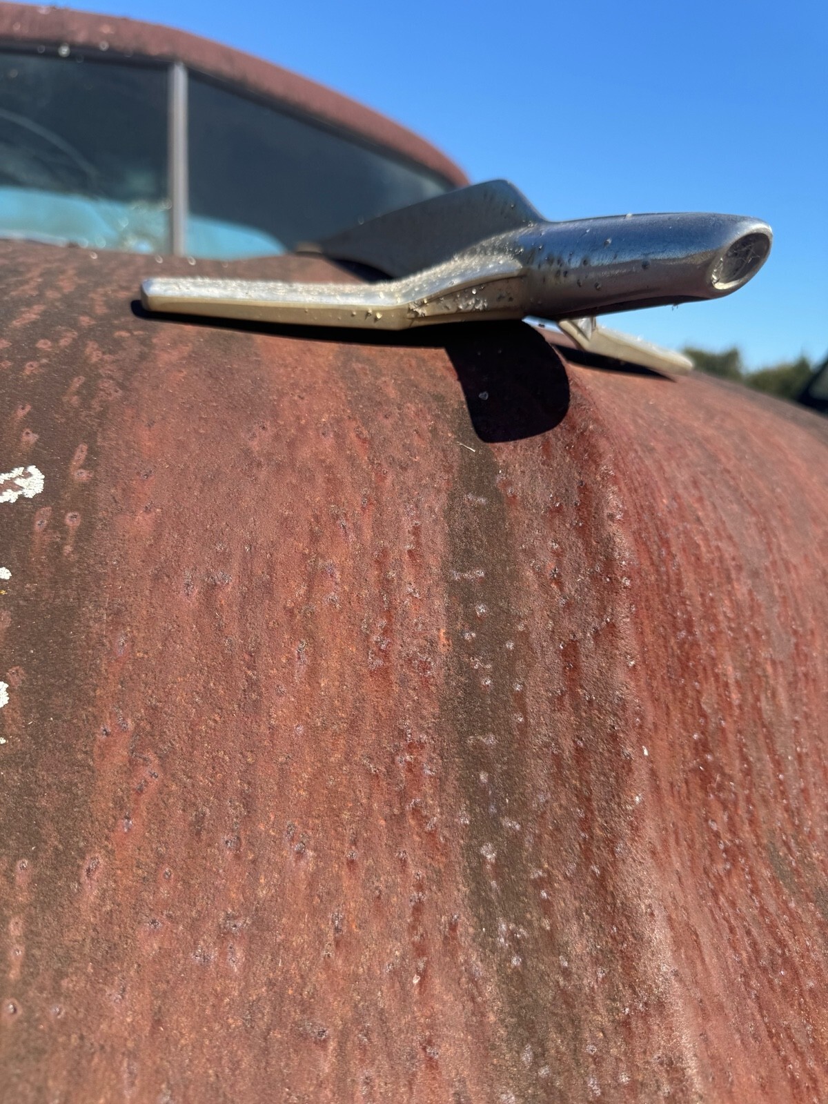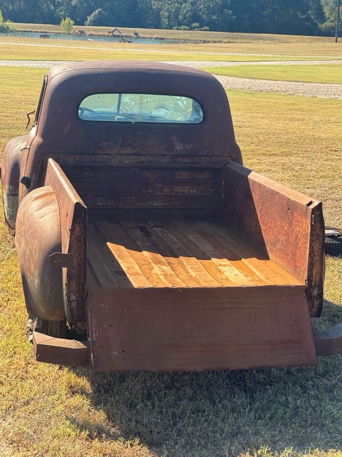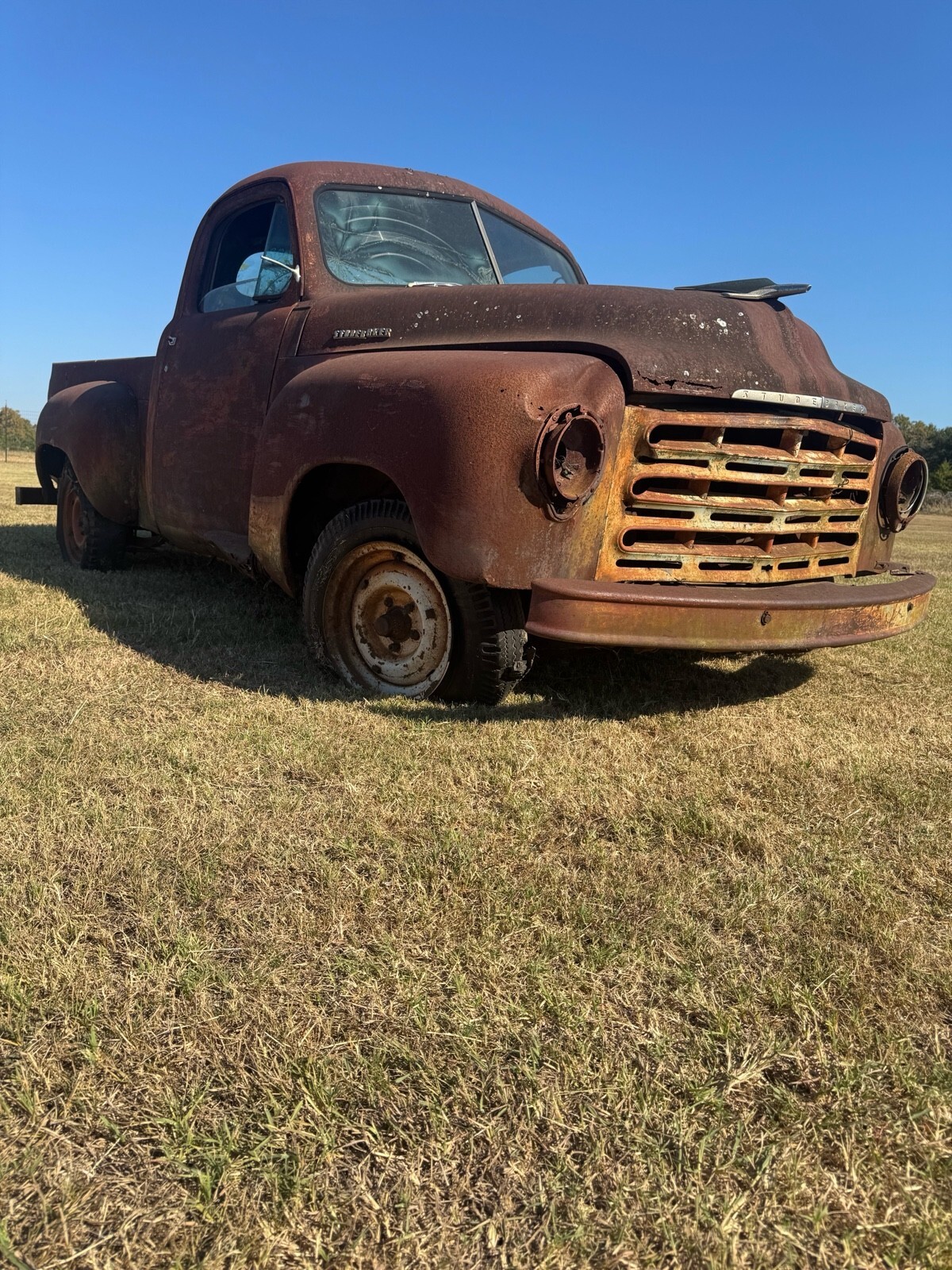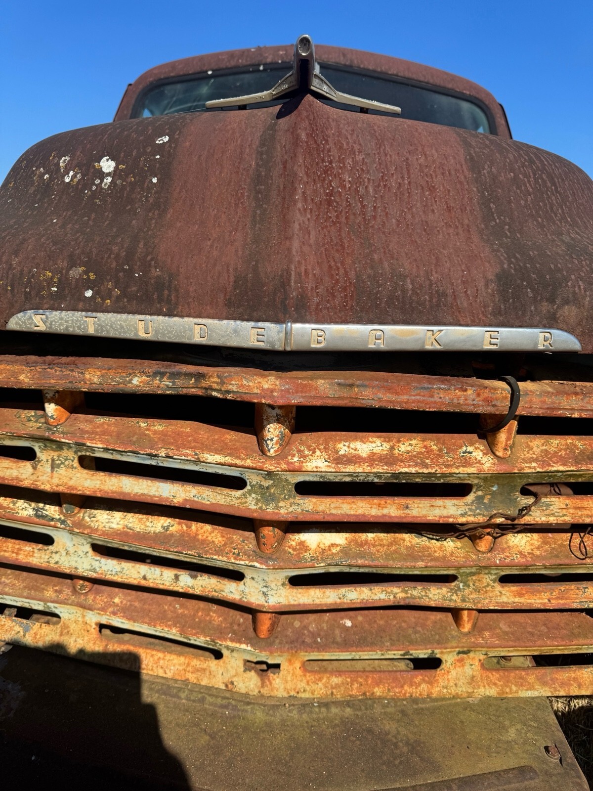 Solid old Studebaker pickup ready for restoration. Body shows typical surface rust and patina but mostly complete. Engine not currently running. Great candidate for a full rebuild or custom rat rod project