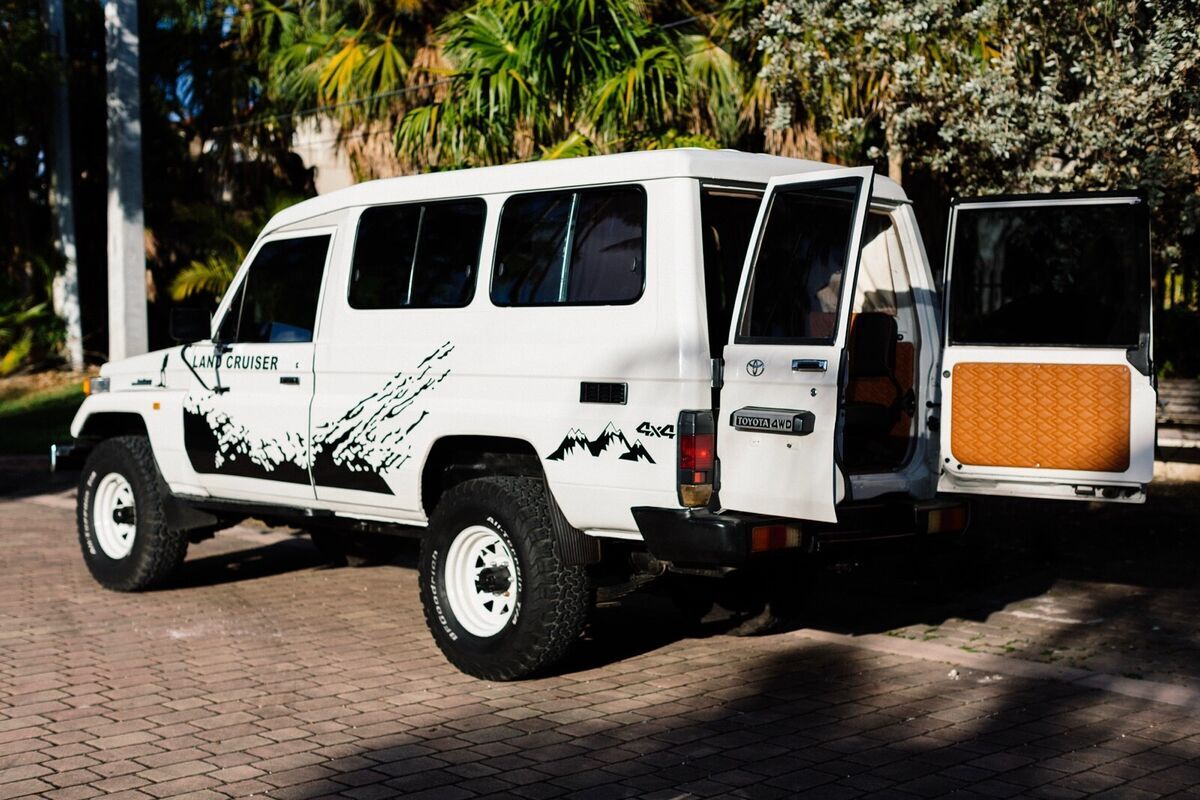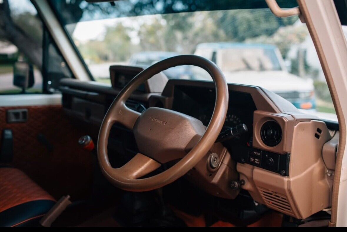 Arguably the most popular variation of Landcruiser ever is now up for sale, in a sought after specification in & out. This 70 series manual, 1HZ inline-6 naturally aspirated diesel Troop Carrier checks all the boxes for the off-roader enthusiast seeking a well sorted rig. From the moment the engine starts, you’ll take note of a smooth, under-utilized 1HZ humming about paired with an H153 5-Speed manual gearbox. The latter of which drives smoothly through the entire range of gears, including reverse of which it has no issues engaging at all. This Troopy offers an incredibly smooth drive with all due consideration to off-road specific tires & suspension. Rowing through the gears in this rig is our favorite as the pre-mentionedengagement follows through with great mechanical clarity. “Surprising” is the term of choice here as this 70 series is the ultimate form of off-roader expression, yet it does so beautifully on the tarmac, giving way to a bountiful, useful life. Not just one for weekends spent in the great outdoors. Pop the bonnet to find an optically & audibly well-kept 1HZ representative of the immensely low mileage this rig has put onthrough the times. This makes it easy to tool around town for errands or even take the family out for dinner. The Cockpit Speaking of family & passengers, the interior has been refreshed by way of new hand sewn seats & floor covers in an orangish-tan with black contrast. The ceiling panels have been covered in a suede like material for a touch of plushness. At the drivers helm, you will find all controls, instrumentation and materials to be factory fresh. A telltale sign that this 33 year old legend has been kept up through the times. The History of the Troop Carrier The Toyota Land Cruiser 70 Series Troop Carrier (Troopy) has been in production since 1984 and remains one of the most rugged and reliable 4WD vehicles ever built. It was designed for extreme durability, off-road capability, and utility, making it a favorite among military forces, humanitarian organizations, remote workers, and overland adventurers worldwide.