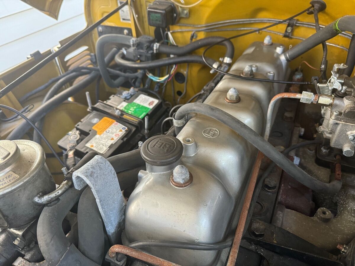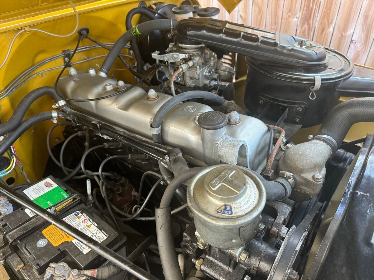 This 1971 Toyota Land Cruiser FJ40 was acquired in 2023 following a refurbishment completed in Colombia approximately two years earlier. Work included a repaint in Yellow, replacing the soft top and exterior trim elements, refreshing the cabin, with air conditioning and overhauling the 3.9-liter inline-six and the three-speed manual transmission. Equipment includes a rear-mounted spare wheel and tire, manual locking front hubs, inward-facing rear bench seats, vinyl upholstery and 15″ steel wheel with oversized tires.