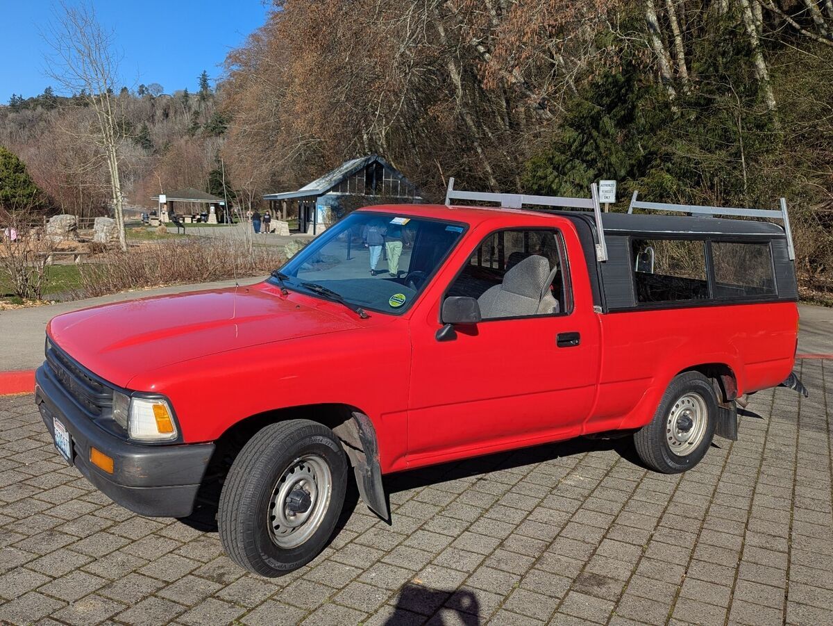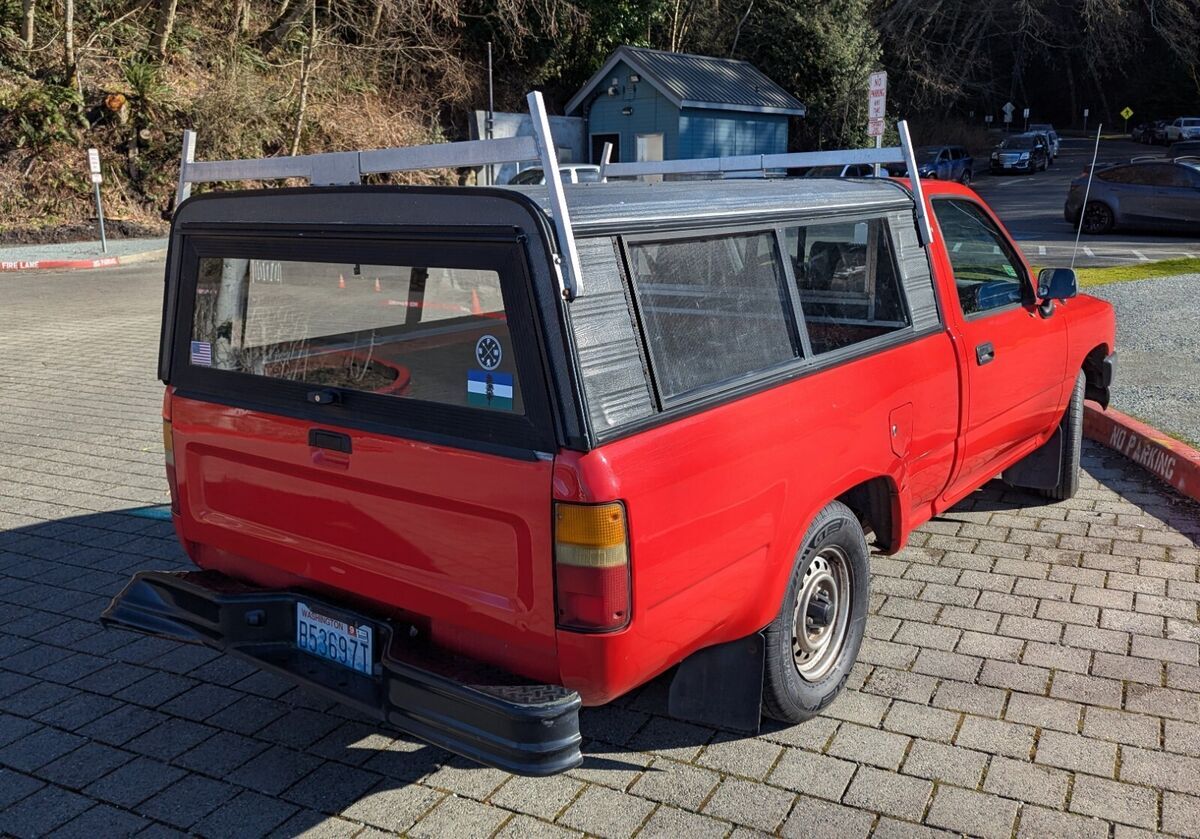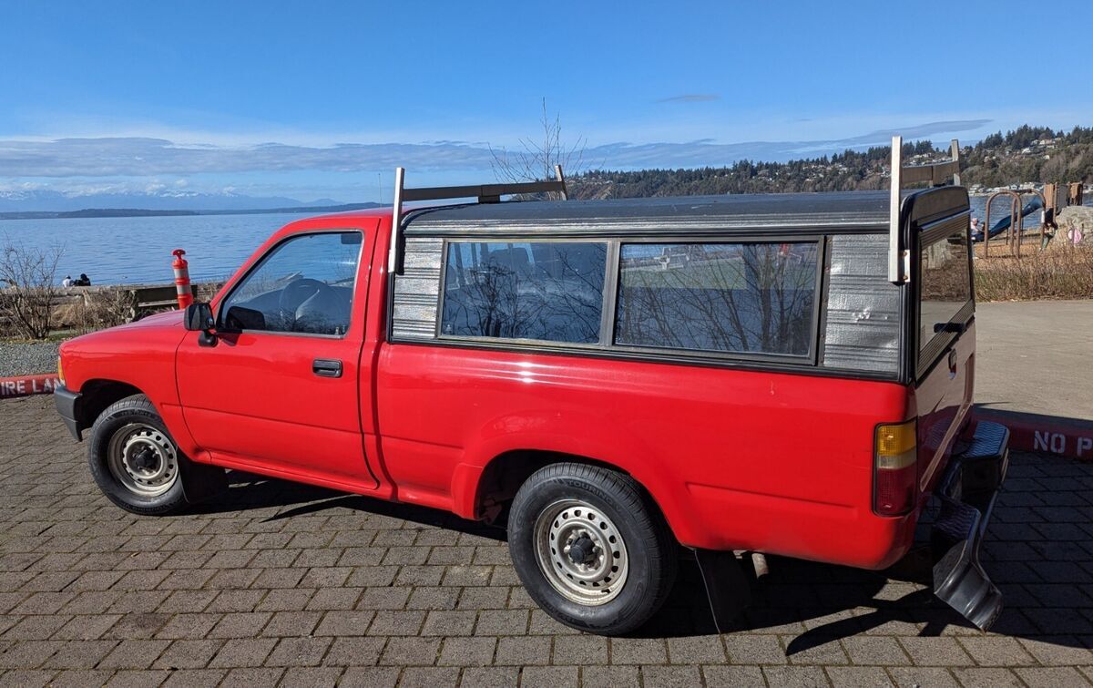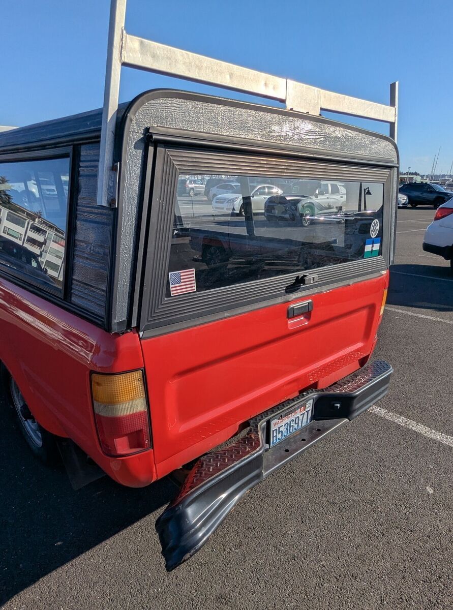 I am the original owner of this great truck and am letting it go it after almost 34 years of great service only because of a change in driving needs. This is the quarter ton standard cab model sold internationally as the "Hilux". It's never been in an accident besides few parking lot dents and dings (most recently the back bumper got snagged on a tall rock, as you see). It comes with brand new tires with a transferable warranty. The bed liner was put in when the truck was new, and I inspected underneath a few years ago when I had the camper shell removed and there is no rust beneath. 14-year-old camper shell does not leak. The truck has the never-say-die 22R-E 4-cylinder, 2.4-liter engine and five speed manual transmission. The engine was updated less than 30,000 miles ago with new head gasket, thermostat, water pump, PCV valve, spark plug wire set, distributor cap, and rotor. Muffler was replaced 23,000 miles ago. Vehicle is located near Seattle WA, just north of Seatac Airport