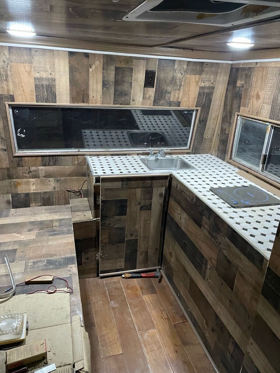 Completely restored camper, new rebuild engine, new tires, new clutch, new carburetor, new stove and new refrigerator.