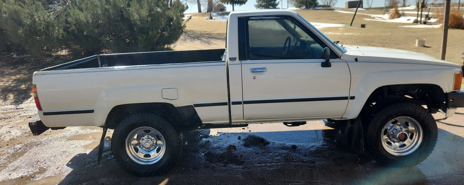 1985 toyota pickup with rebuilt 22re with about 1900 miles on rebuild, all new suspension and tires, body is not perfect does have some rust got it fixed with bondo, runs drives and shifts good.