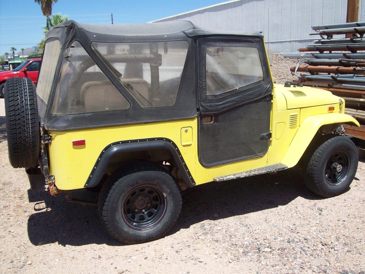1974 4WD FJ40 for sale. Motor out of a 1975 Land Crusier. Passes Maricopa county emissions. Current registration.8000# Waren winch. Straight 6 cylinder. 4 speed transmission. Waren hubs on front.After market disk breaks on front wheels. Lockable front console. Lockable custom tool boxes under back jump seats.Soft top. Custom jerry can mount on back. Header added to engine for gas millage and power. New aluminum radiator.Tall boy jack mounts on floor in back, but not in the way of passenger feet. Every thing works. Can be driven away.