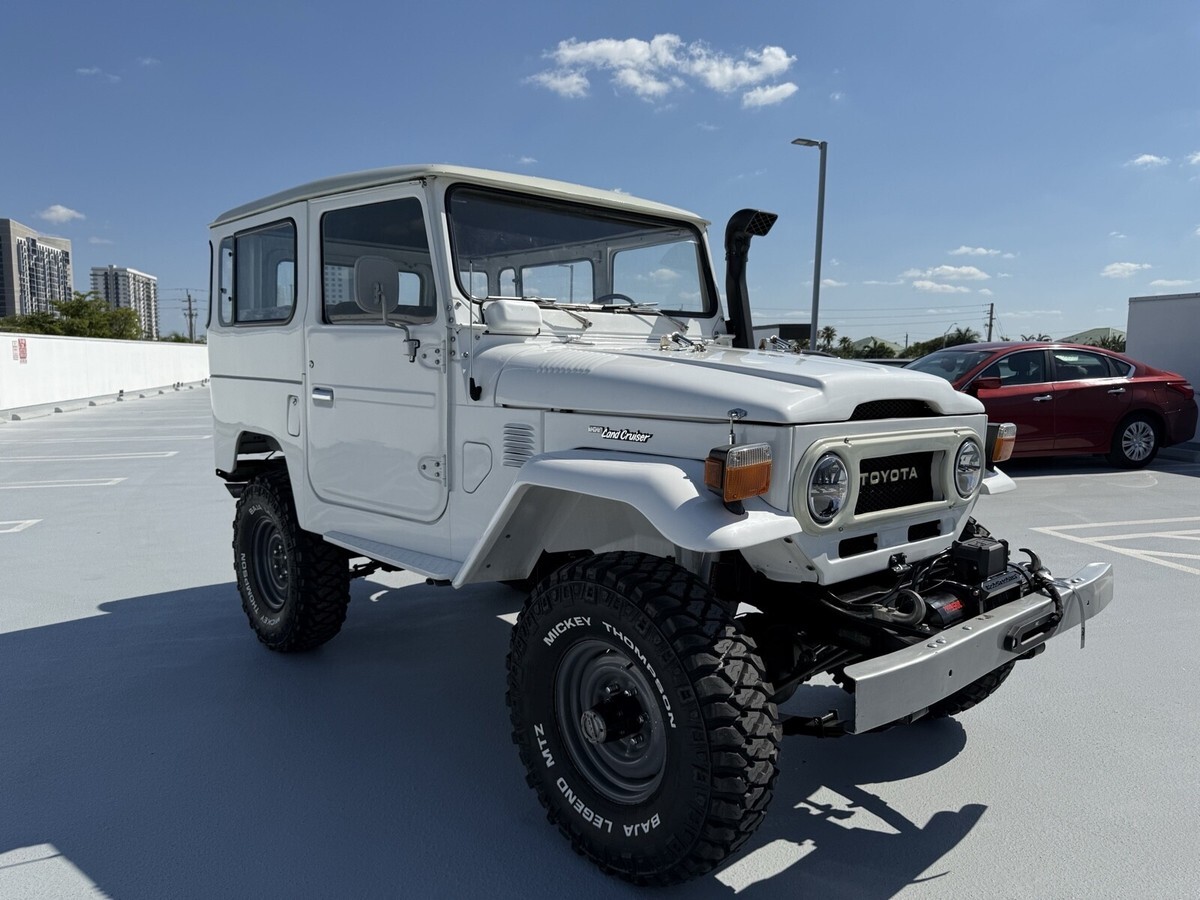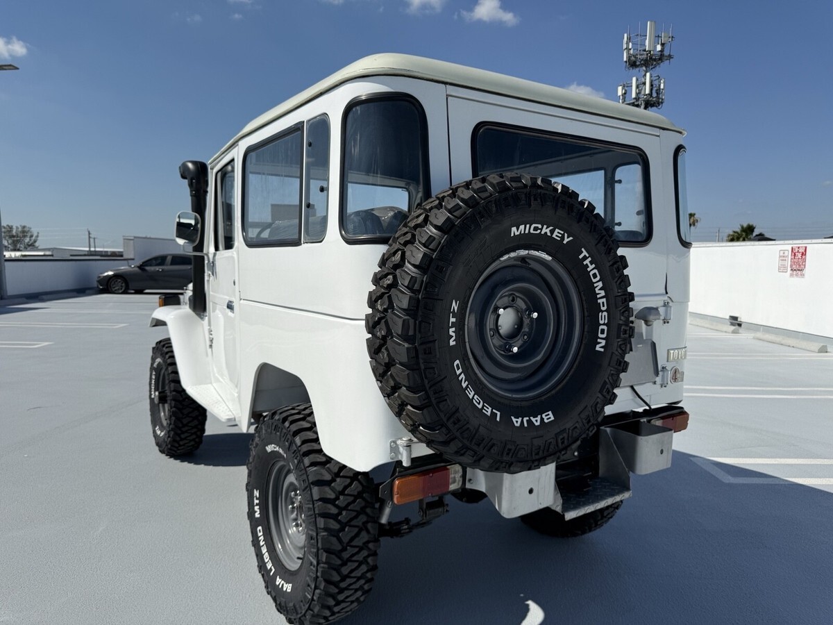 This 1976 Toyota Land Cruiser 40 is a restored vehicle with updates to the exterior, interior, and drivetrain. The vehicle runs great, mainly used for weekend drives. The color is white and the title is clean. The KM is 32.