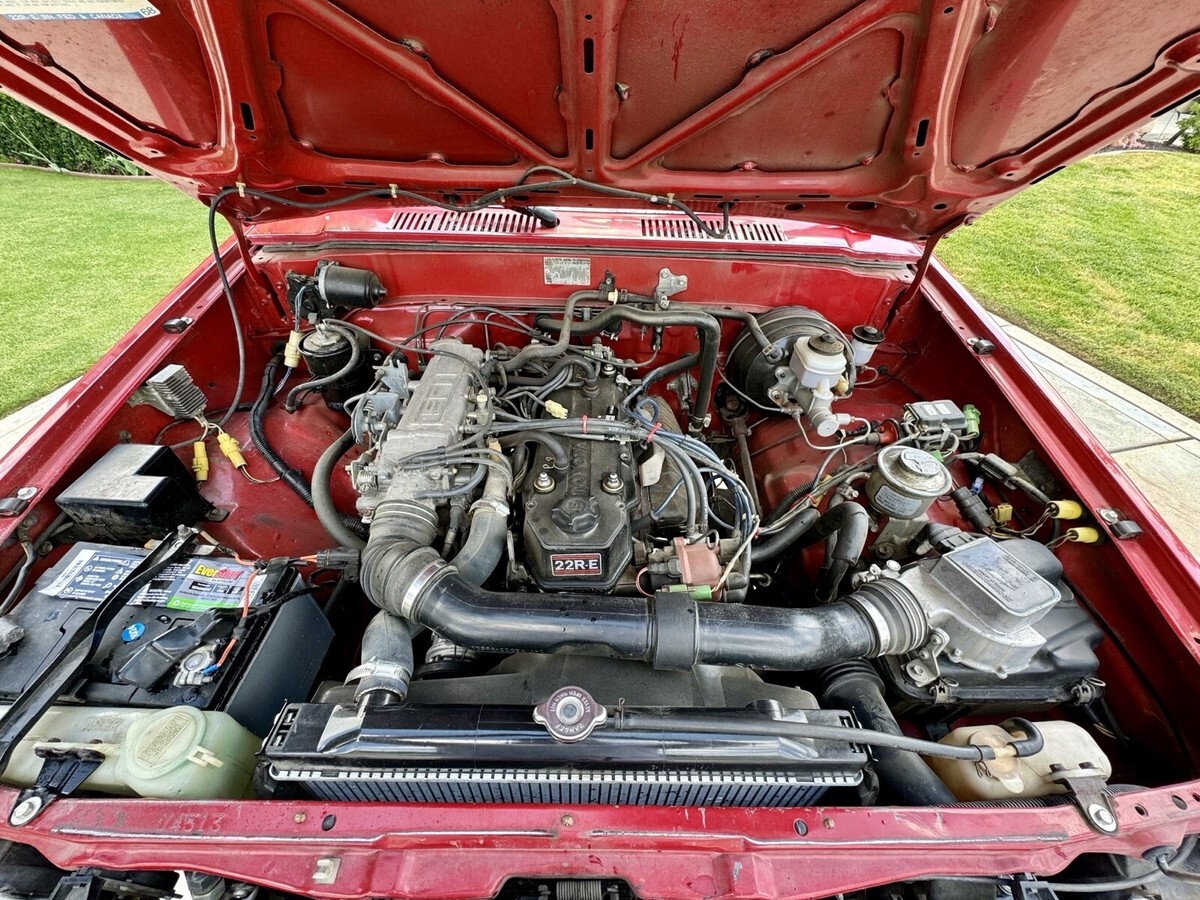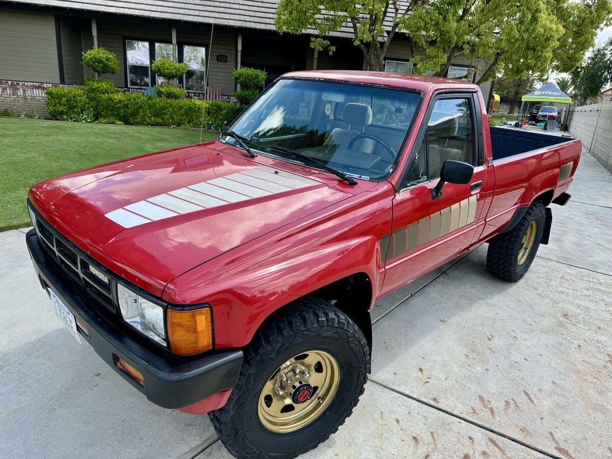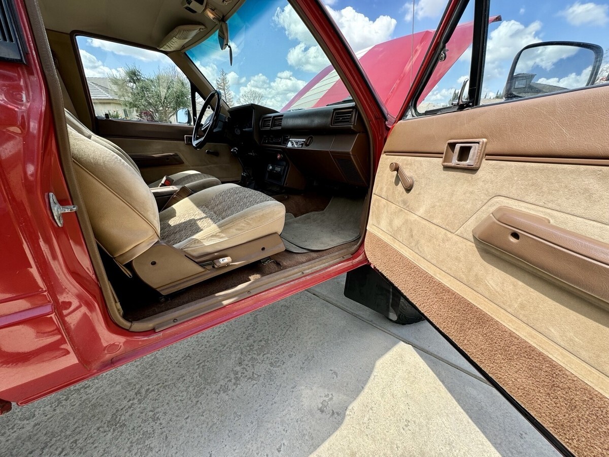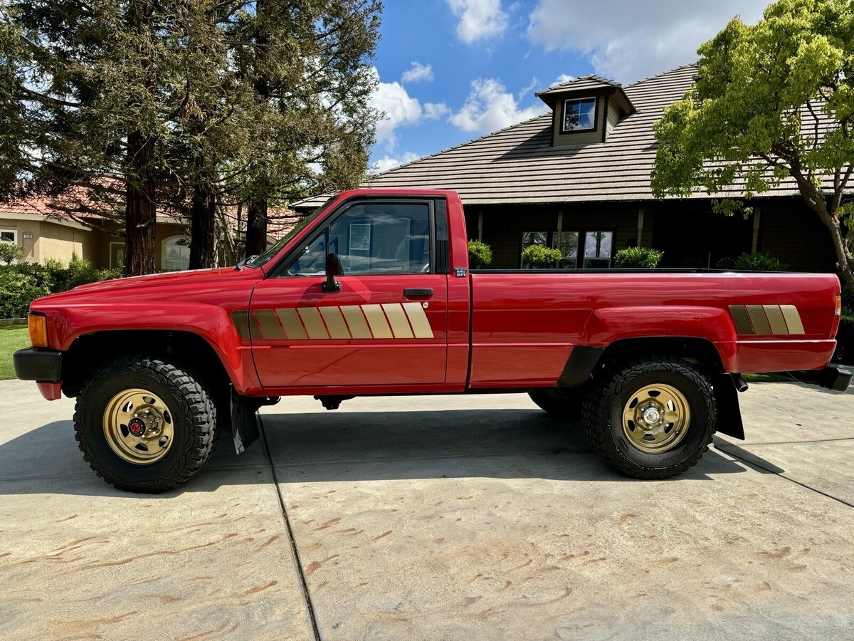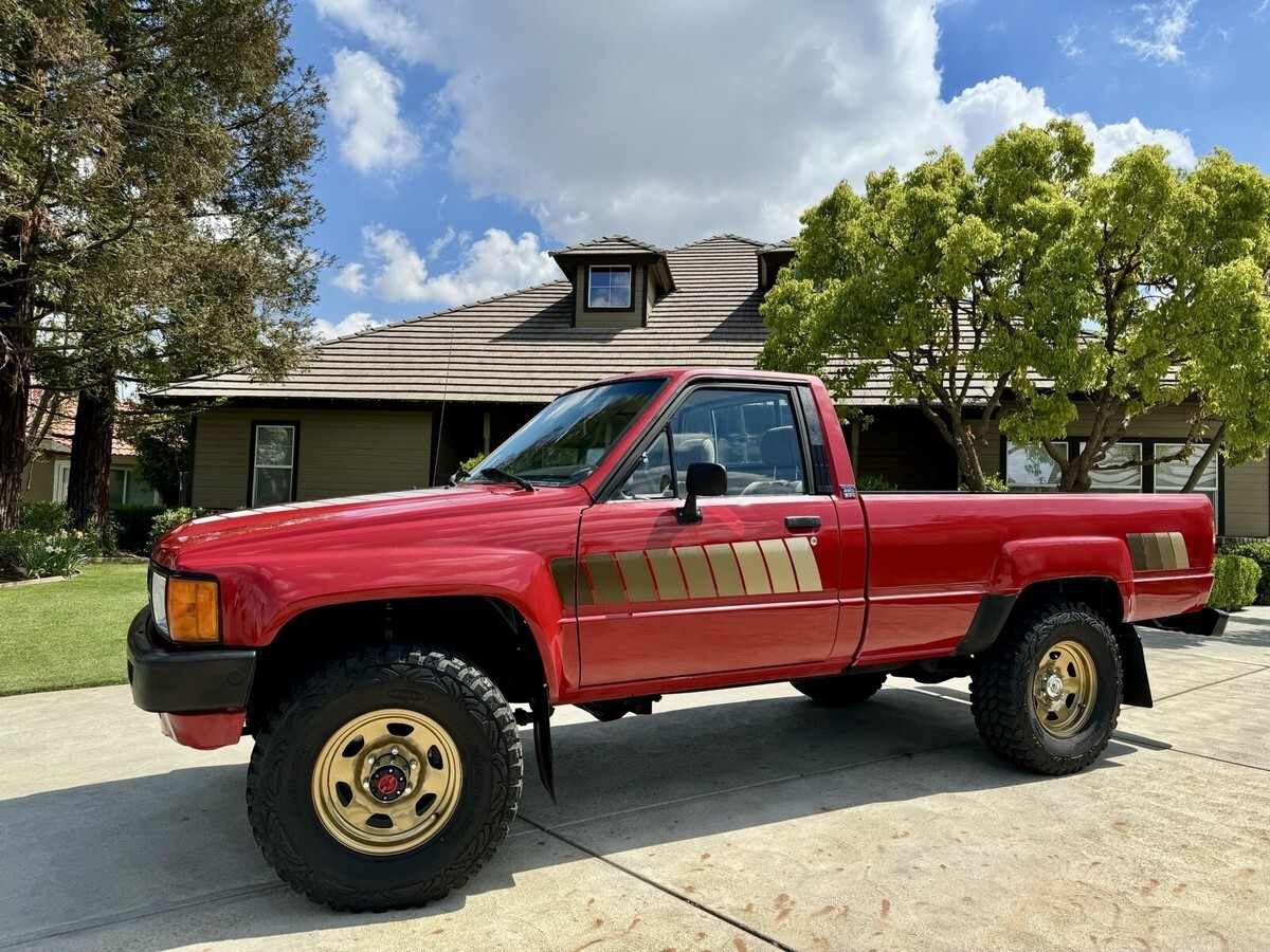 1985 last year of the solid front axle first year of the EFI. This is a survivor, original paint even original factory SR5 graphics. Won’t find them in this shape too often. The interior is the best I’ve seen with the SR5 door cards and seats. Driving this truck is going back in time to 1985 I hate to use the term but it really is a time capsule. This is the truck to have I have owned it for just under two years and have enjoyed every moment of driving it. The motor has been gone through and has a new transmission the front axle has been rebuilt only blemish to this truck is when the new transmission was installed it must have pinched the rear main seal causing it to seep slightly. I never thought I’d let this truck go so I put sound proofed and insulated the full interior it’s wild the difference it made. I live in Bakersfield so AC is a must and it blows cold with the added insulation the heat stays out and the cold stays in.