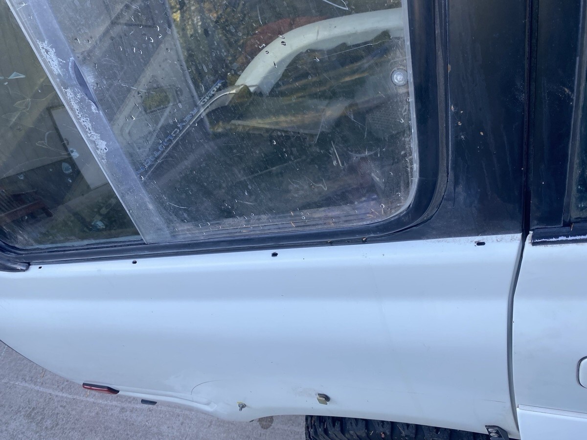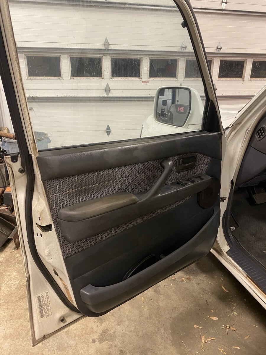 The odometer shows approximately 292,000 miles. It is a stock vehicle with the Toyota 3FE engine and automatic transmission. It has the semi-float rear axle and is without lockers. The paint is original and will hold a shine momentarily, but the Arizona sun has done damage. The missing bumper corners and mud flaps are included but not installed. The interior shows its age and 292,000 miles of driving. The interior is salvageable but needs to be throughly cleaned and seats probably replaced. The dashboard is cracked in multiple places. The upper steering column cover is missing. The window tint is bubbling and needs replaced.