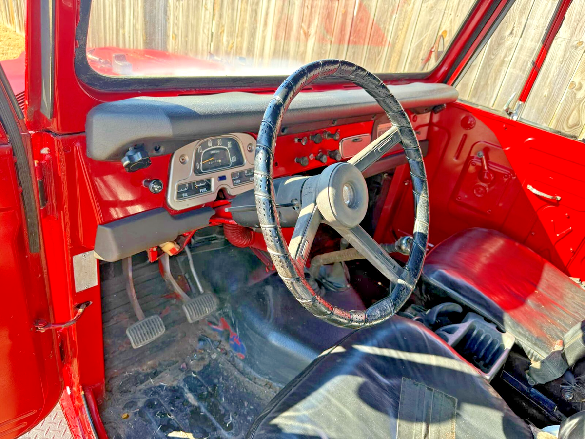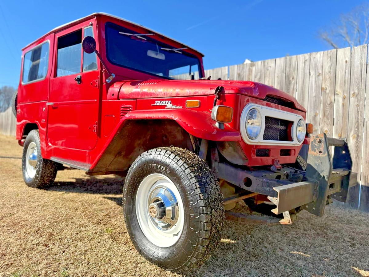 This is definitely a head turner. Family is selling as part of an estate sale. This 1973 FJ40 Land Cruiser was babied by its late owner until he could not take care of it any longer. Its in running condition but hasn't been run much in last 2 years so we would recommend getting all fluids changed and doing full tune up.Here is what we know...PROS- Runs and Drives (pretty fun actually according to our test drivers)- 4WD works and it has a roll bar- No Significant Rust or Rot - it was coated both underneath and inside the cab years ago and they did their job. The coating inside is old enough now though its starting to peel.- Body in very good condition - with new paint and little attention to its details this could be factory restored without a lot of effort- Nice cover comes with it- Tires are almost new- Extra parts and owner's toolkit for it comes with itCONS- The speedometer and odometer has stopped working. This seems to be a common problem with these. Late owner had bought a replacement but not replaced. Replacement is included with the extra parts that go along with car.- Original paint is peeling in a couple places. Mostly the clearcoat but some of the red. Its 52 years old. Still looks really good for that as you can see in the pics. Up close the peeling is obvious.- Its a 3-speed and is not like your usual manual to drive. You need to be a good manual transmission driver to handle this beast.- Needs fluids flushed and new ones added since its been sitting most of the last 2 years. That said, battery works and it starts up pretty well- Top's paint also cracking. Land cruiser owner said might be easier to just get another top.- We really cant tell you much more about it other than we know the owner, he had it a while, and he took care of it.