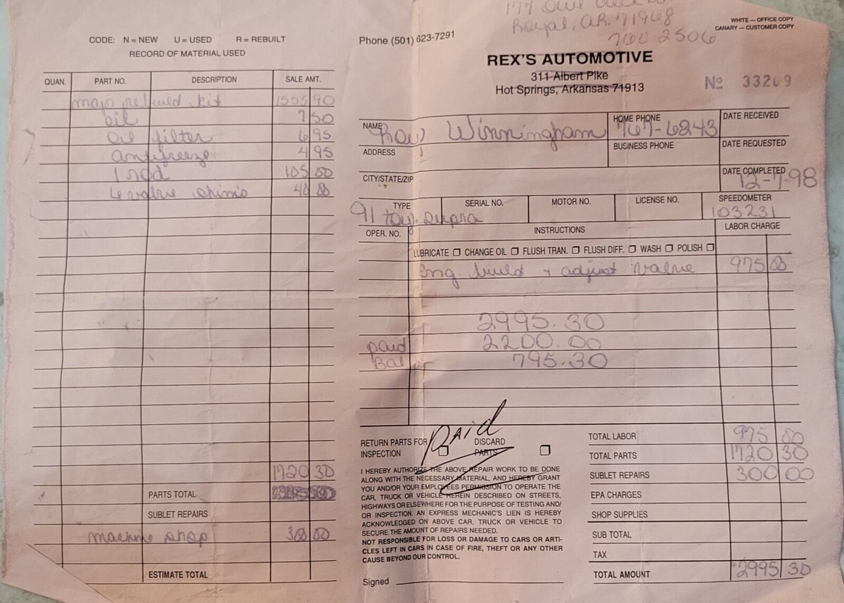 Has around 40,000 mi on rebuilt motor. Was running well when parked, but that was years ago. Stopped driving because it would slowly overheat, which seemed to be a blown head gasket on the exhaust side (no water in the oil). But no extra damage was done to the engine. Car itself has 142,xxx miles.
