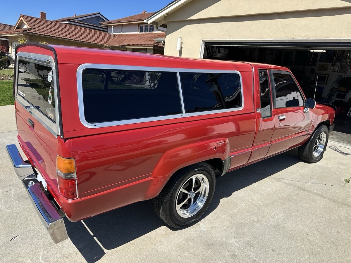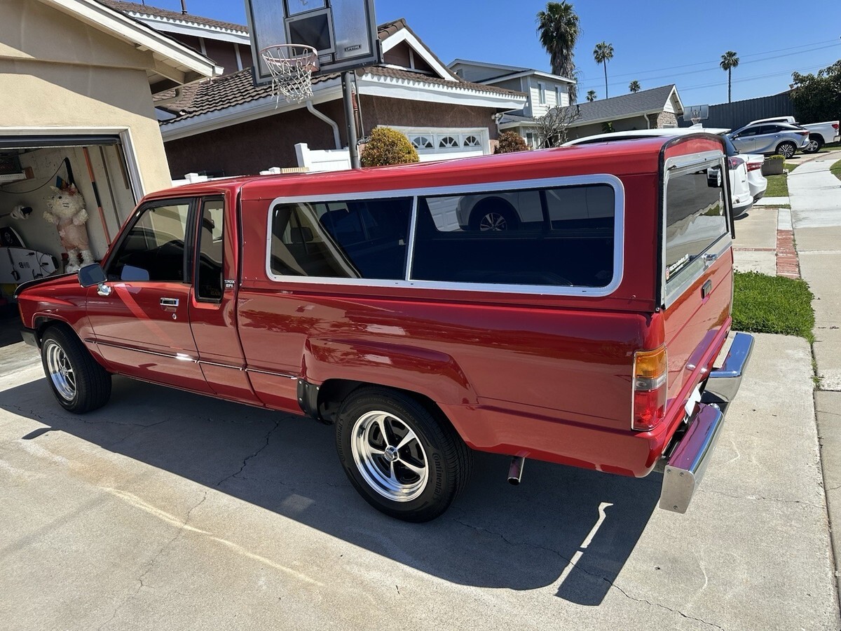 1985 Toyota Pickup SR5 Xtra-Cab in great drivable condition.I am the third owner and have owned it for two years and have used it as my daily driver.22RE 4-Cylinder EFI (Electronic Fuel Ignition)205,000 MilesClean California Title in my name and in handPasses CA smogFully loaded with options: Power steering, Cold Air Conditioning, Power Antenna, Power windows, sliding rear window, cruise control, tilt wheel, New touch screen radio with hands free capabilities, chrome trim package with matching side molding, 3M Crystalline Ceramic tint on front windows, American Racing rims, newly redone interior with sound deadening material installed and lastly a very nice camper shell in great condition.Parking brake light will not turn off but does not affect the funtionality of the the parking break and truck bed will not fold down.Recent upgrades include $1200 new metal radiator, new OEM CTR steering Idler arm, Koyo Rear Axle Bearing kit, new OEM starter, mass flow air sensor, fuel pressure damper, fuel pressure regulator assembly, new OEM water pump and new alternator.I will help secure a safe transport of the vehicle but buyer must pay in full for the transport and for vehicle prior to shipment. I have a very dependable shipping company i have used a couple of times