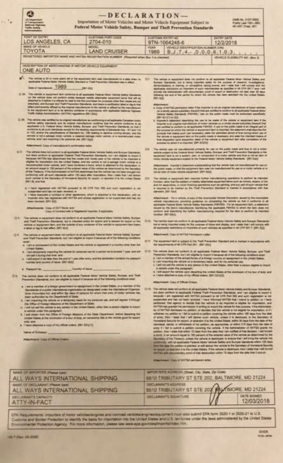 Imported by myself in 2018 from Japan, all pertinent paperwork completedClean and Clear Virginia Title in my nameManual locking front Hubs33" tires