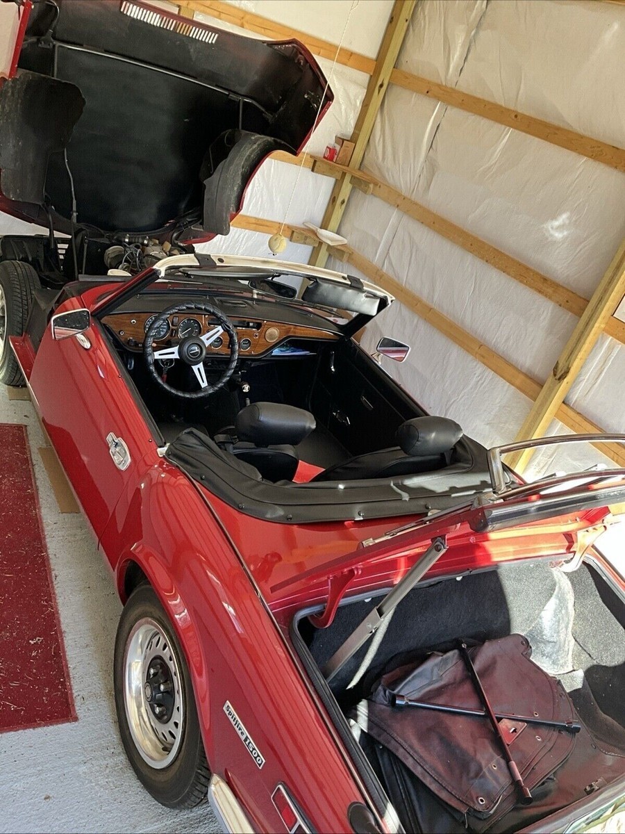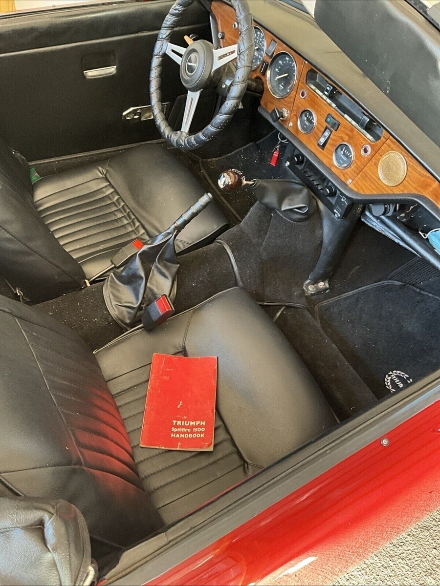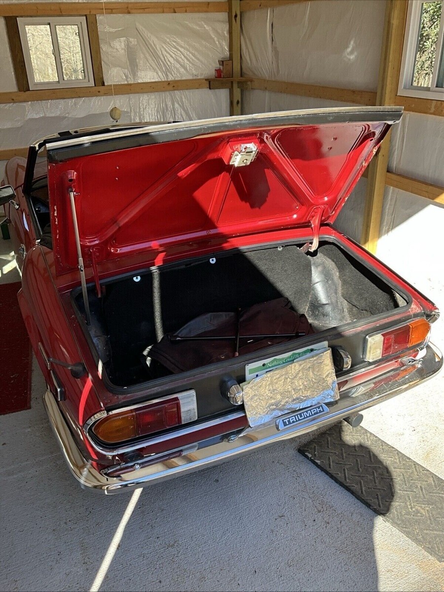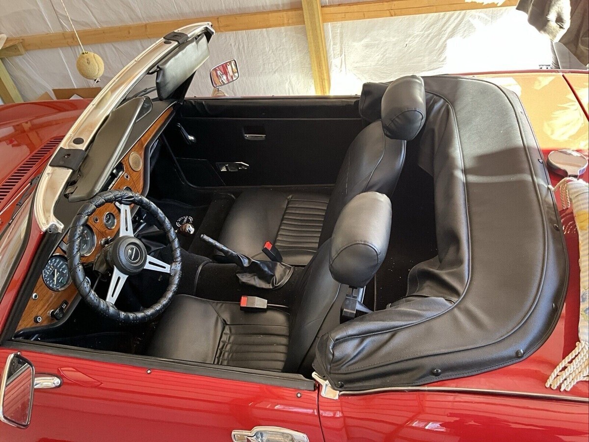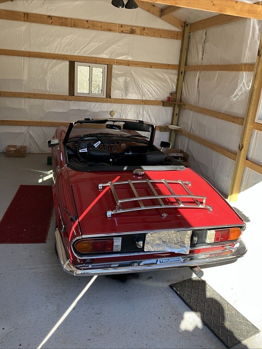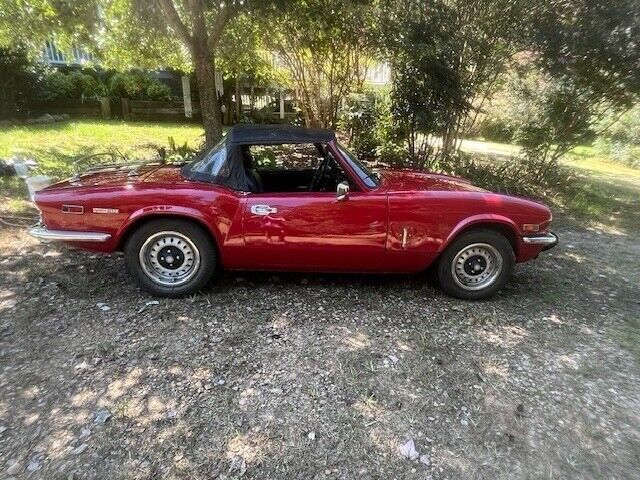 1974 Triumph Spitfire 1500. 99,000 miles. About 90% restored (cosmetically). Car was purchased already restored. Four cylinder. Four-speed manual transmission. Runs good. Tires less than 2,000 miles. Bluetooth radio and new speakers and luggage rack were added. Soft top and tonneau cover. Carmine red. Has been garaged since I took ownership in November 2021. Less than 200 miles per month added since then. Oil and filter change about every 300 miles. Fluid levels frequently checked and maintained.
