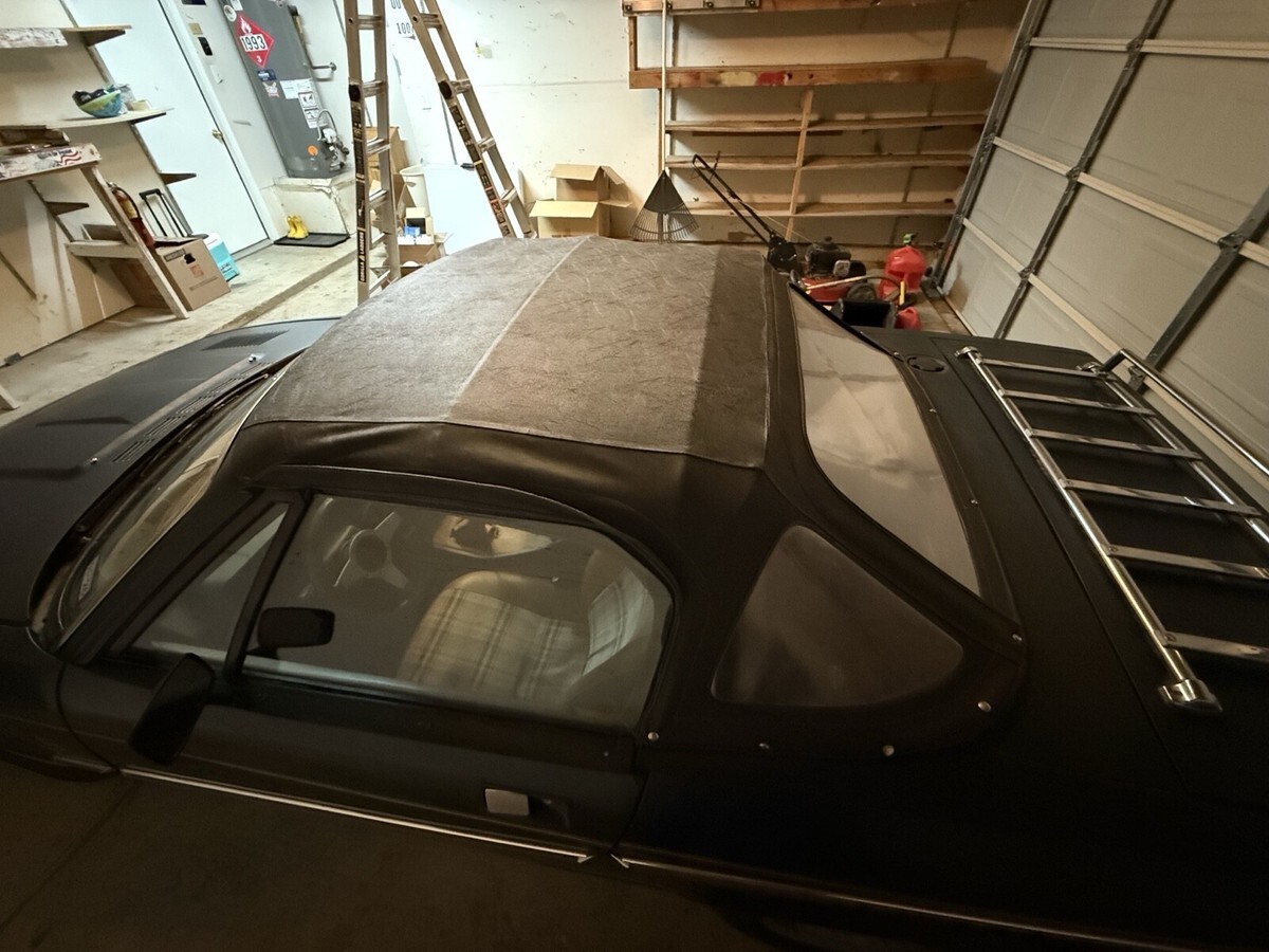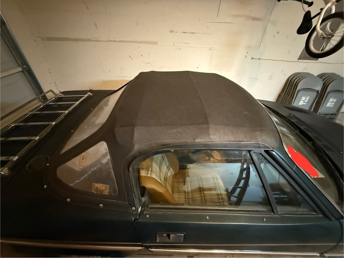The body is solid and straight. The paint shows well for its age. The soft top is in good shape with one torn button and two small tears in the passenger-side rear quarter window.