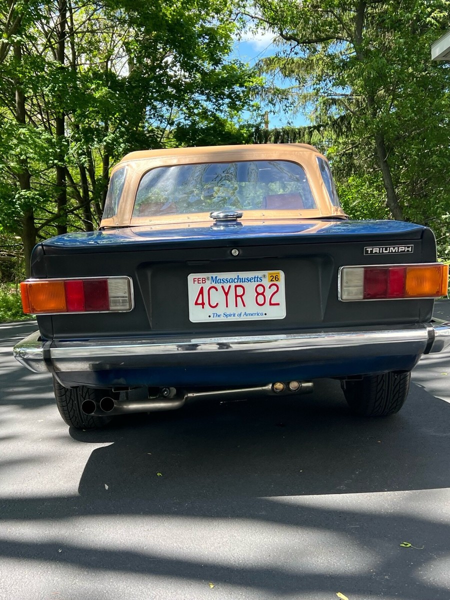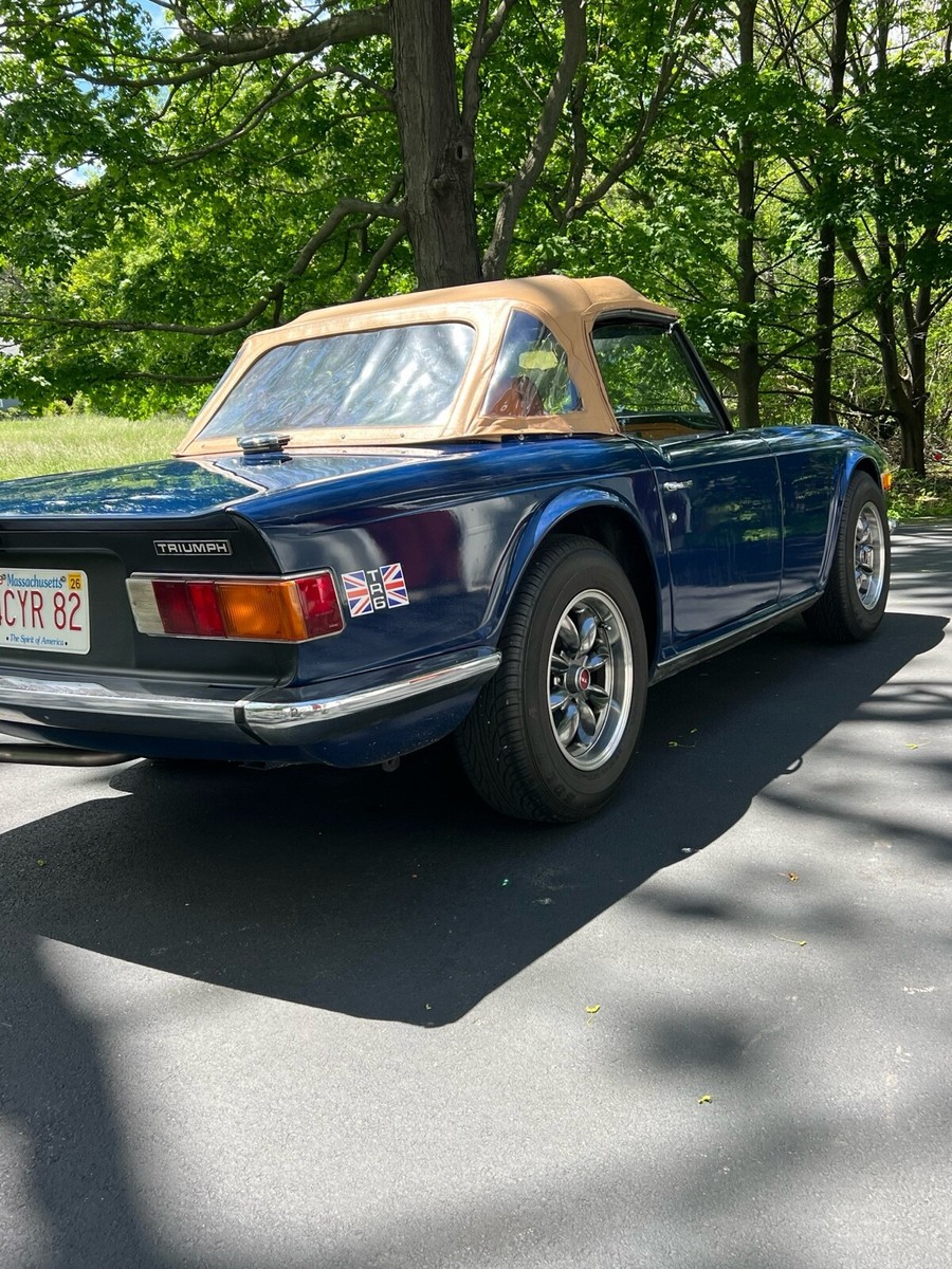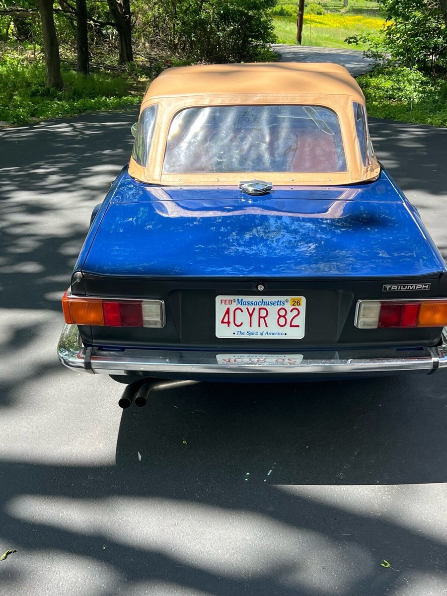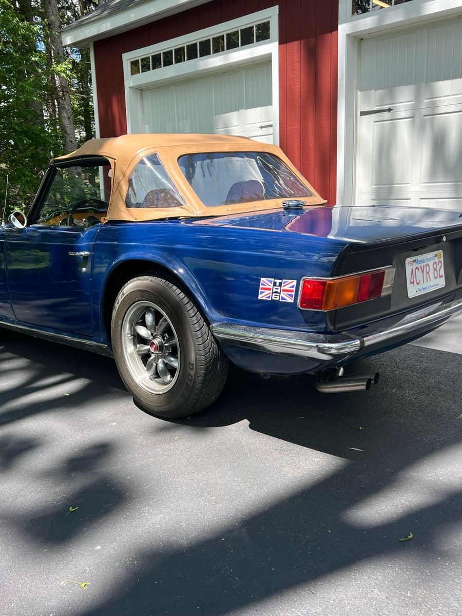1974 Triumph TR6, 2.5 Liter(150 CI) Straight six, 12 Valve Front Disk brakes, Rear Drum, Duel Zenith Stromberg Carbs Rack and Pinion Steering, Walnut Dash, Weight 2,280 lbs, Sapphire Blue Exterior, 4 Speed,
