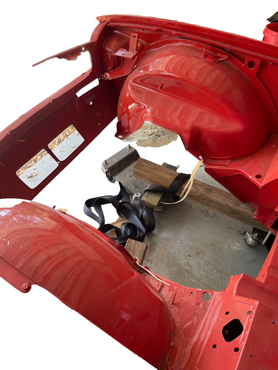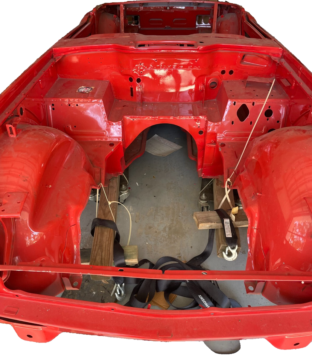 1974 Triumph TR6 - Body Shell and Chassis ONLYFrame off RestorationRefurbished Body Shell with Hood and Trunk Lid - Sprayed with Dupont Pimento ColorRefurbished Chassis - Blasted, Green Epoxy Primer - Sprayed with Corrosion Resistant Black SealerBody is NOT mounted to the Chassis