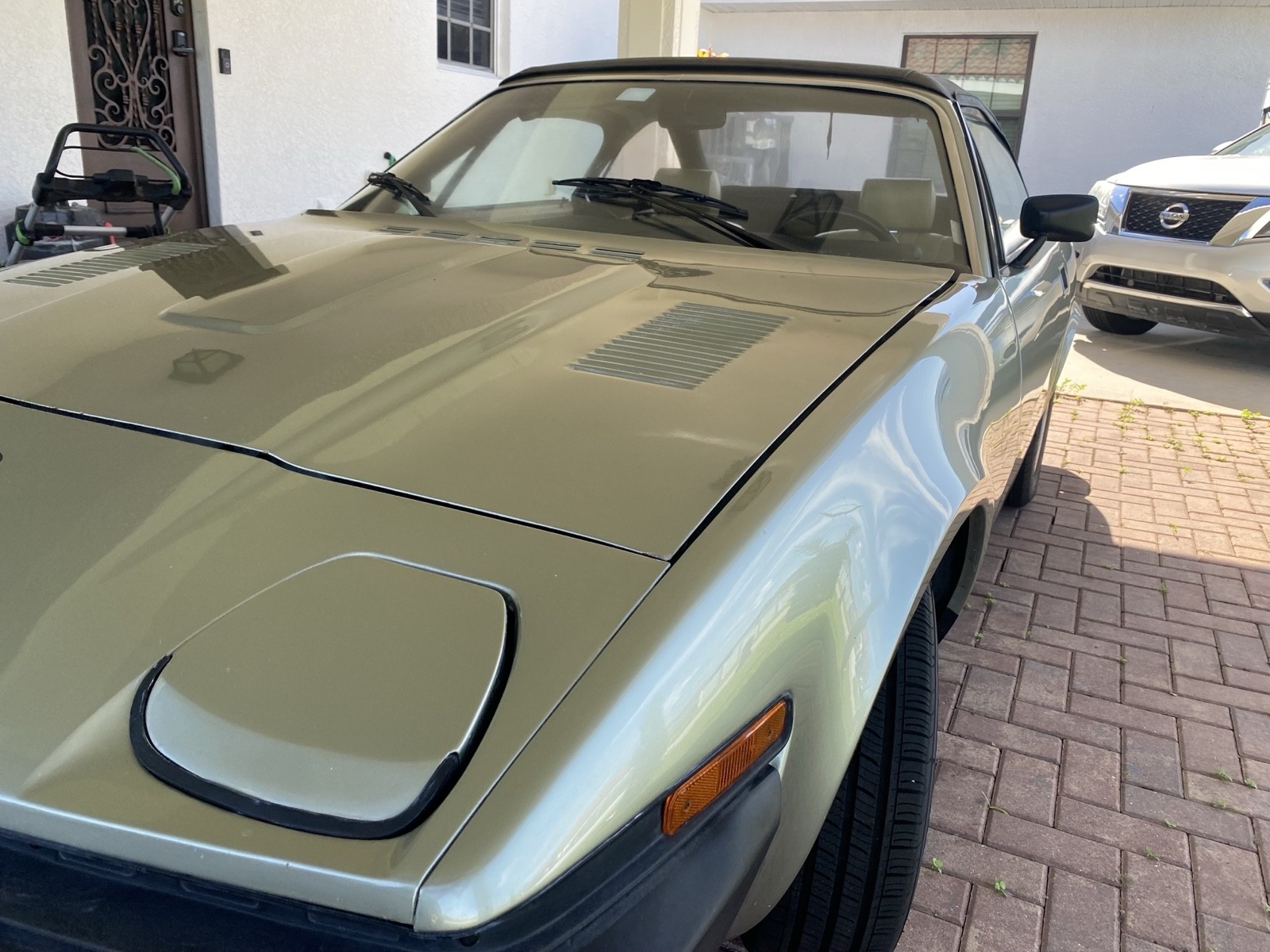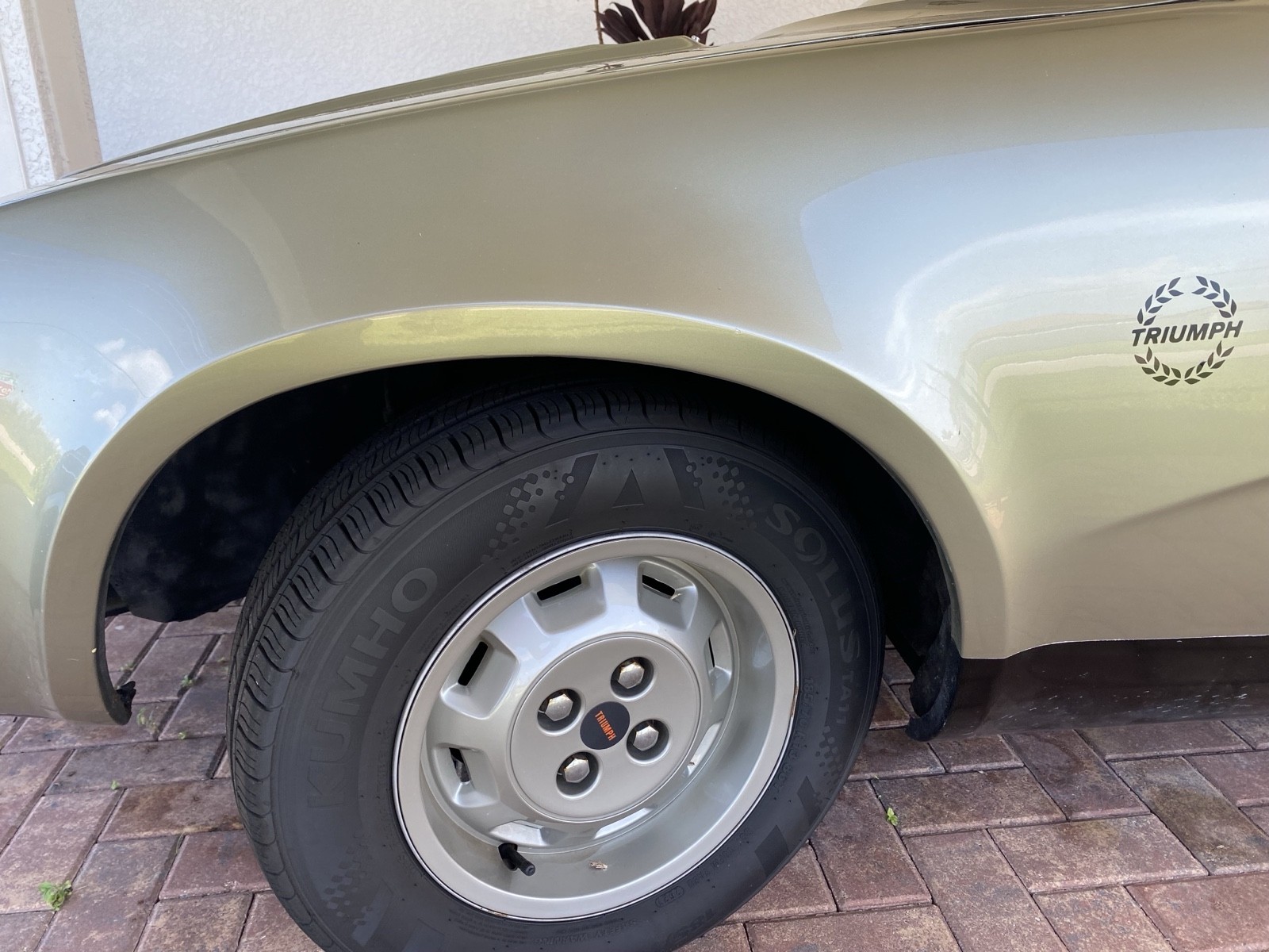 Triumph TR7 in excellent condition, polished wet sanded paint, 8/10 some minor chips in front. Top 7/10 rear window has minor hazing, will try and buff out: Mechanically sound 9/10 just replaced timing chain and sprockets, all new valves and springs. Tires have less than 1000miles 3 yrs old. All electrical 10/10 lights and signals work, including wipers and windshield washer fluid: Was OEM AC car however compressor removed and capped. If you can find one this car could have AC.