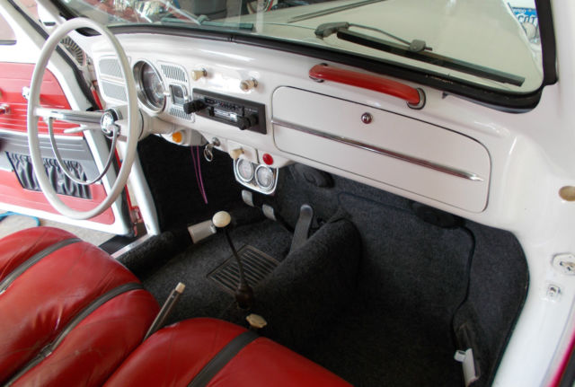 It has a very nice shortened sun roof from a stock VW and air flow to the engine from both the side louvers and the gap beneath the artificial continental spare give it plenty of oxygen. Seats are from a Chrysler Cordoba (rich, Corynthian leather!?!) – yes, they fit, and are VERY comfortable.