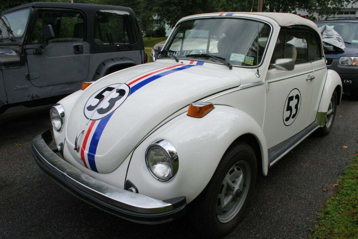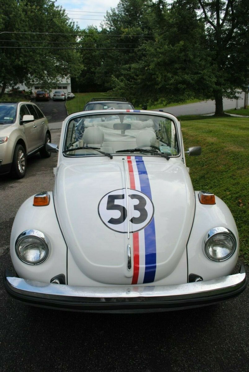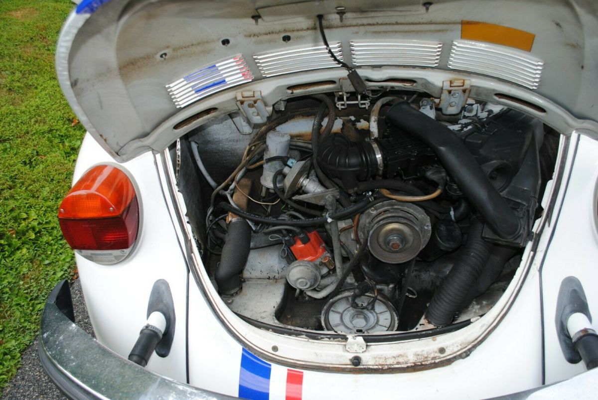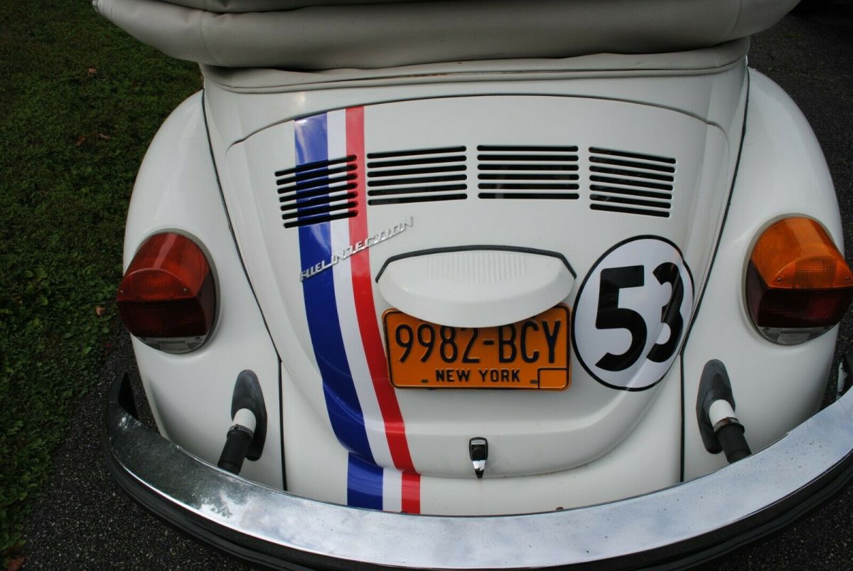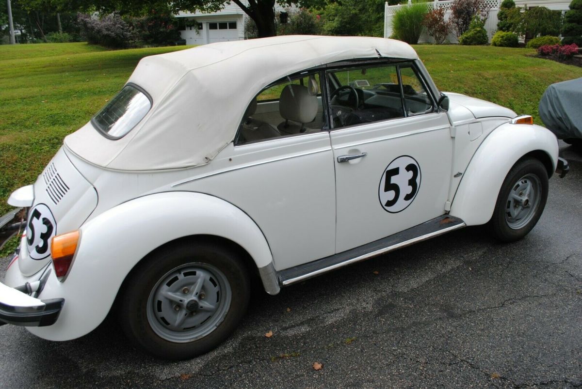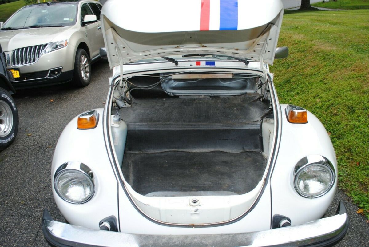 1977 Volkswagen Super Beetle Convertible, triple white, with Herbie the love bug striping. We call her "Trixie," Herbie's topless sister. This car is a great candidate for restoration. The body is in great shape as are the floor pans. It starts right up (new battery) and runs and drives very well. It is currently stored inside and only used for Sunday drives and local parades and shows. This car gets honked at, yelled to, and pictures taken of more than any car I've owned. This car is NOT a Champagne Edition (there is a Champagne Edition sticker on the dash that was there when I got it, but the car came with the L90A color, not the L90B color. The L90B was the Champagne Edition color). In the pictures you will see a 'birth certificate' recently purchased from VW Germany which shows the car was manufactured on 5/12/1977 and delivered in Grand Rapids Michigan on 5/16/1977. Included are the original owners manual and the warranty book dated 6/10/1977 with the card for the original owner still attached on the cover. Also included are service records dating back to the early 1980's. I mentioned that this car is a great candidate for restoration...here are ome thoughts on that. Certainly needs a top as the current top is ripped. The interior is functional without rips, but could certainly use a refresh. The drivers seat is loose and the passengers seat does not tilt forward. The chrome around the passengers window needs replacement. There is rust in the frame rails and under carriage. Please look at this link (https://smile.amazon.com/photos/shared/3eOjBm1XRm2AtL4Kbj_2uw.ewr7ySwy0Dumn_UHrLsrdm?sa-no-redirect=1) to see a bunch more pictures on the undercarriage so you understand the work needed. Ignore the last picture in the album, obviously a different car. Hit me with questions if you have them. This car is listed locally so the auction is subject to removal at any time as per the Ebay terms of service. I had every intention of restoring the car myself, but other projects have taken precedence so its time for Trixie to find a new home.Vehicle Details: