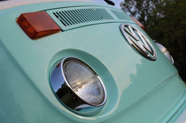 BODY: The body was completely stripped down to bare metal and built back up to what you see in the pictures. I spent many hours block sanding and prepping the body before laying the paint down. We completely stripped the body down to a shell taking all the glass out, doors, etc. to make sure everything was done correctly. The floors are in great shape with no rust holes. The only area that does show some rust is the battery tray area. A new metal tray was placed in but you can still see the old pan underneath. No issues though, and the battery holds just fine. The paint is super clean and straight. (Please look at all pictures) Only a few little areas are showing on the driver’s side center section of the body. It’s not a 100% perfect paint job but it’s still very nice! We did not cut corners on the restoration. Every window seal, door seal, window scrapers, weatherstripping were all replaced on this bus. A brand-new windshield was installed. The Westfalia pop-top was restored and repainted with high quality fiberglass boat paint and is in great shape. The canvas was replaced as well as all the seals for the pop-top. All the chrome on this bus was replaced with new high quality Wolfsburg West pieces. New headlights, turn signal lenses, taillights, side markers, license plate light assembly, antenna. All the signals, lights work great. The sliding door hinge is totally rebuilt and it slides and shuts great.