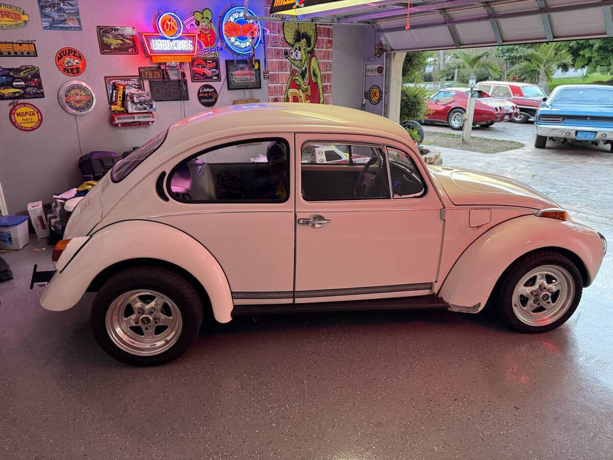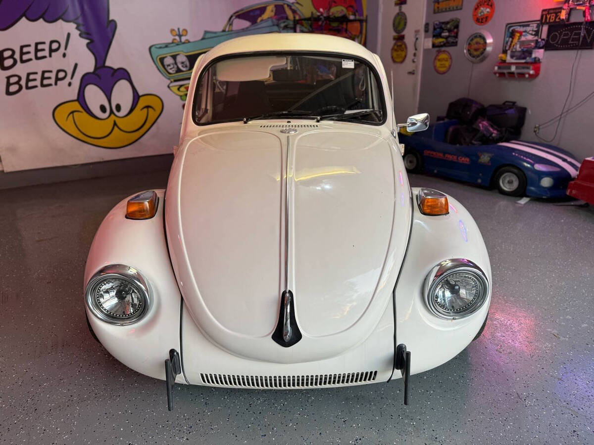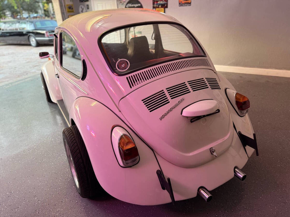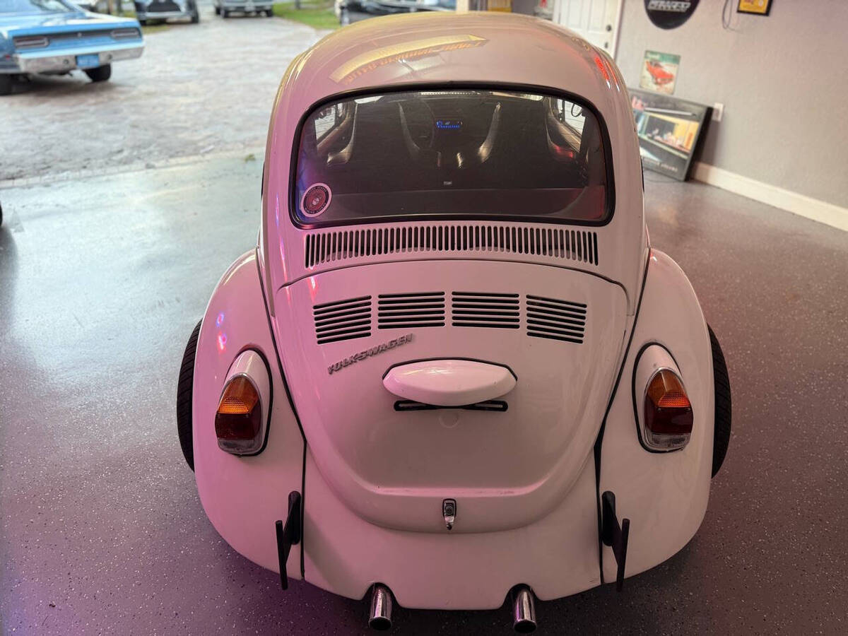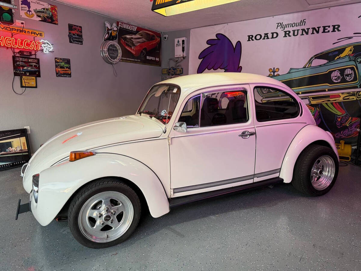 Flat 4-cylinder engine 4-speed manual transmission White exterior with Black interior Dual exhaust Modified suspension Engine dress-up accessories Black bumper T-bars Chrome trim Custom wheels Super Nice Solid Volkswagen!