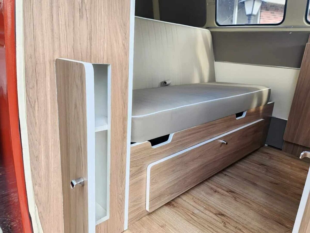 General Description:This Kombi was carefully restored with high-quality materials and impeccable finishes. With a cream interior and a cream and red exterior, it is ready for the next adventure!