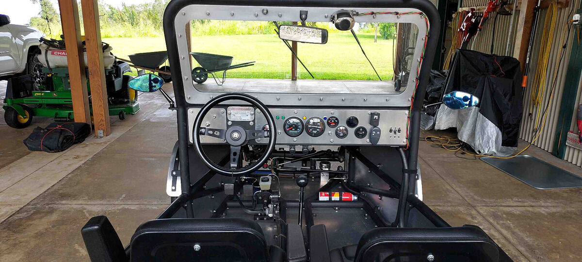The side body, fenders, windshield mount, dash and floor are fabricated from .125 aluminum and are stainless bolted. The hood is fabricated from .8 aluminum and is stainless bolted.