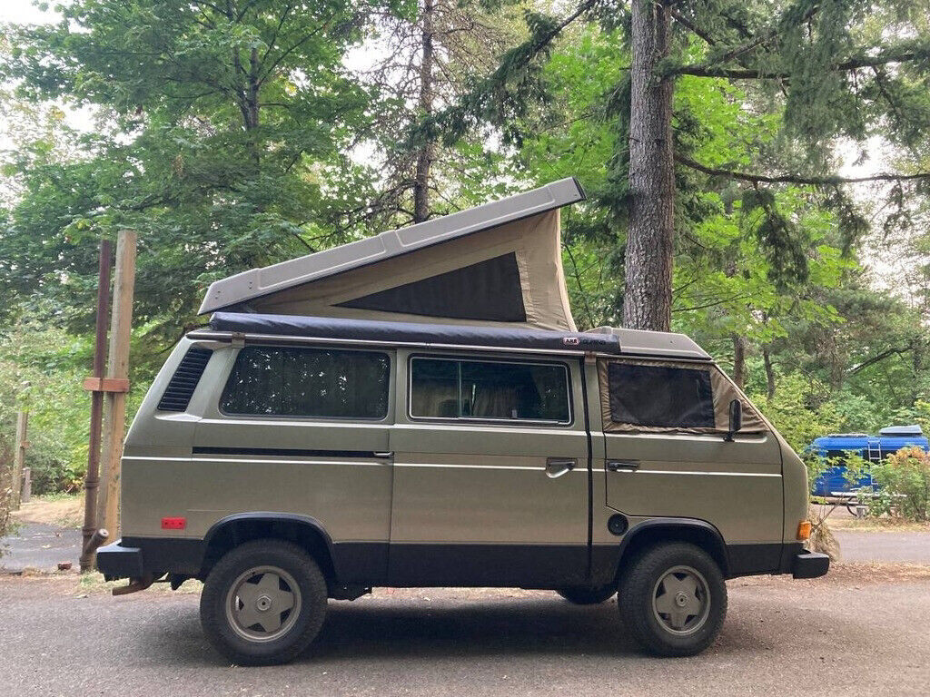 1985 Volkswagen Vanagon Camper This 1985 Volkswagen Vanagon Westy Camper is a great option for anyone looking to hit the road this spring. It comes complete with tables and a house battery, perfect for off-grid adventures. While the fridge has been removed, it offers plenty of space and functionality for your camping needs. The van features a Peliquin limited-slip differential and has been lifted about 2 inches for better clearance. a 1.9L automatic engine, it runs smoothly and is in good shape. Additionally, a two-bike rack is included, making it easy to bring along your bikes for those outdoor trips. Whether you're cruising to your next destination or camping under the stars, this Vanagon is ready for the journey!