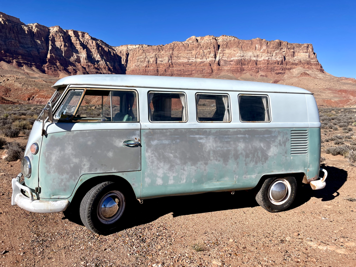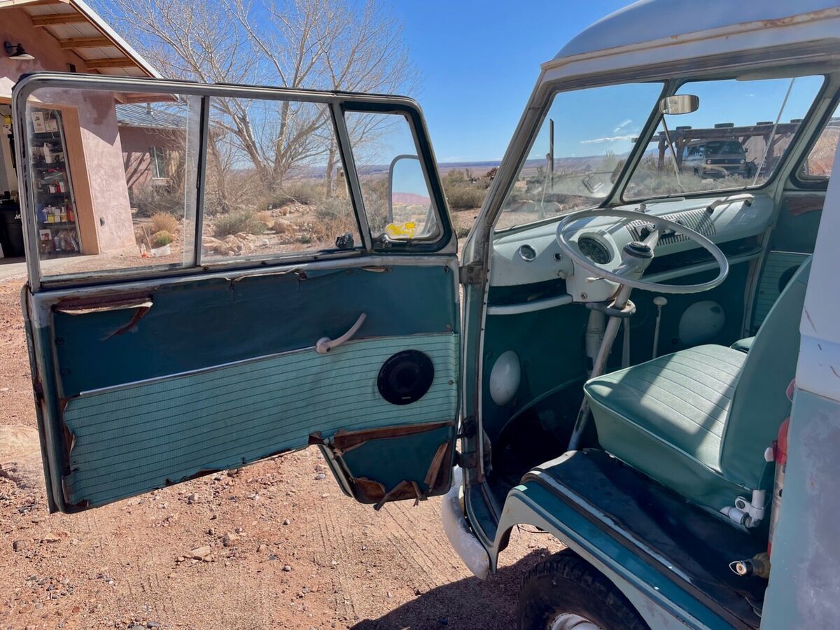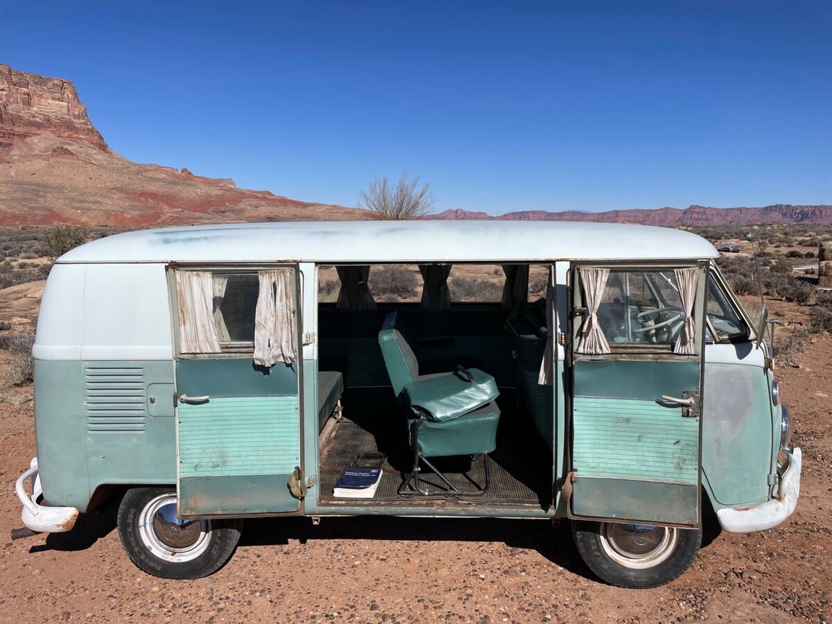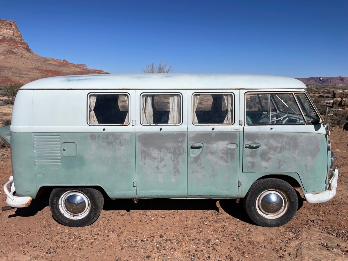 I have owned this Arizona van for 40 years. It was my only car for the first 20, but lately I have been driving it less often and have decided to let it go. Original paint, never restored, just kept running all these years. 25 years ago I built a Gene Berg 78 x 88 engine with new case, Gene Berg forged counterweighted crank, semi-hemi heads, dual Kadrons, 4 quart sump, etc. See the receipts. I've put about 15,000 miles on it since then. It's a strong runner, I go up hills in fourth I used to have to downshift for. Quality rebuilt transmission installed in 2008. It likes to mark it's spot; engine and transmission both leak oil, mostly from the axle boots and oil screen cover plate. Lights, horn, signals, wipers all work, but it's still 6 volt so pretty dim compared to modern headlights. There is some rust perforation in the back floor near the doors and some repaired rust in the front floor, otherwise only minor surface rust. The interior is tattered but relatively complete. Newer Wolfsburg West original style seat upholstery up front.I would think this would be a good candidate for a full restoration or a resto-rod. Or just drive it as it is, it's a fun car, and the patina is free.You are welcome to come to see and drive this VW before your purchase....so offer with confidence, ask questions..., and request any additional pictures that you need, thanks for looking!