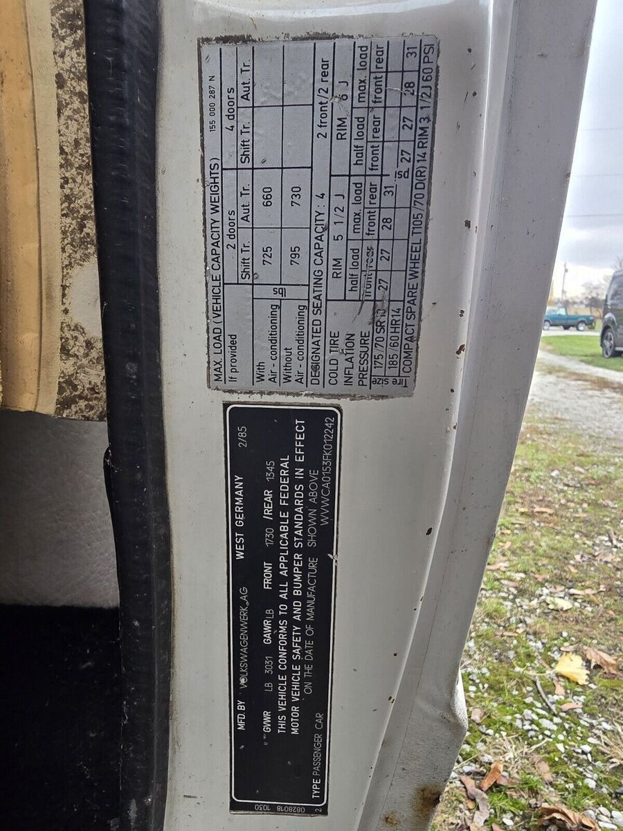 1985 Volkswagen Cabrio Convertible White CABRIOLET DLX