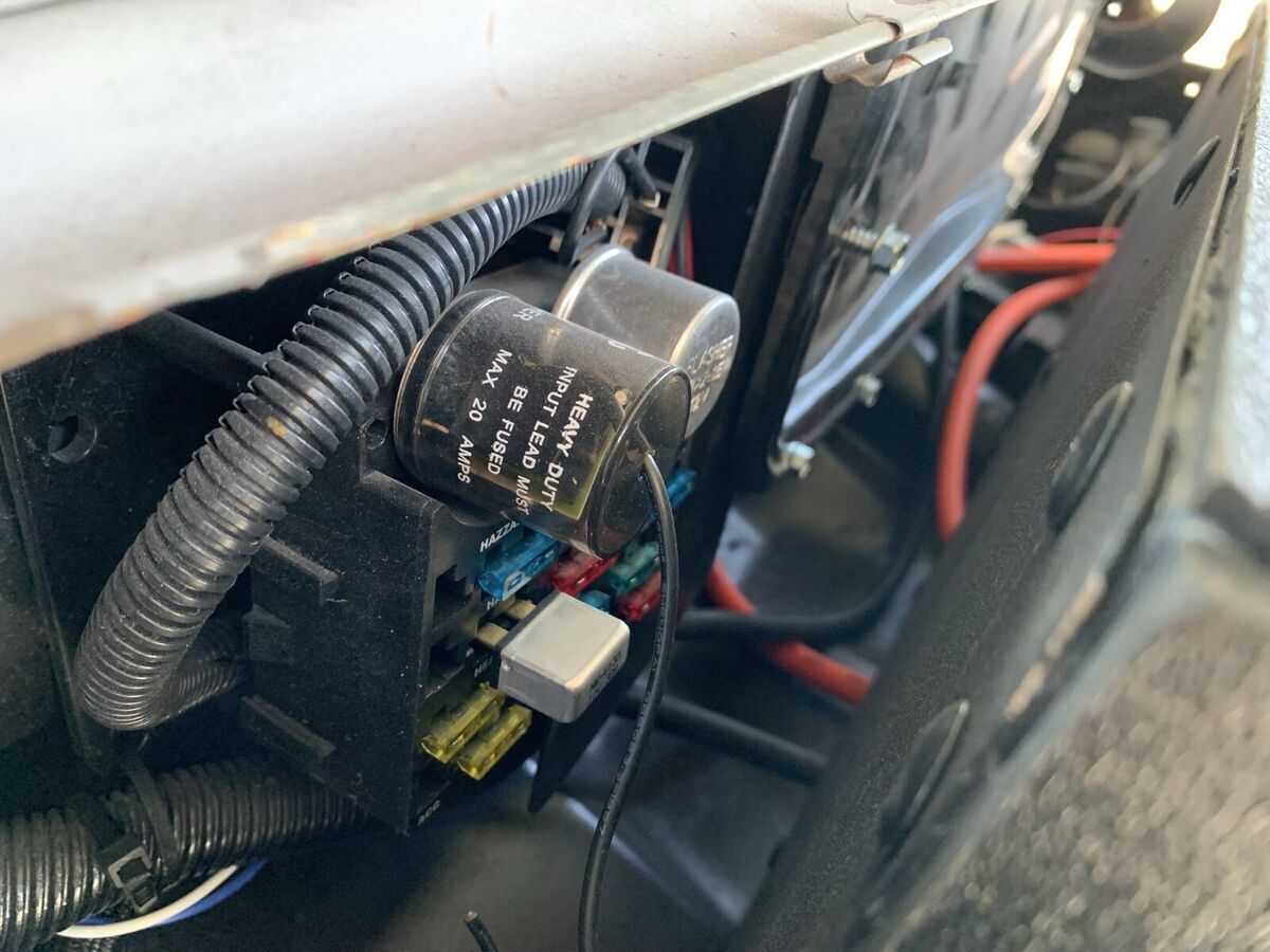 Original VW wiring was replaced with modern silicon wiring and GM fuse block. New air horn and trolly bell!
