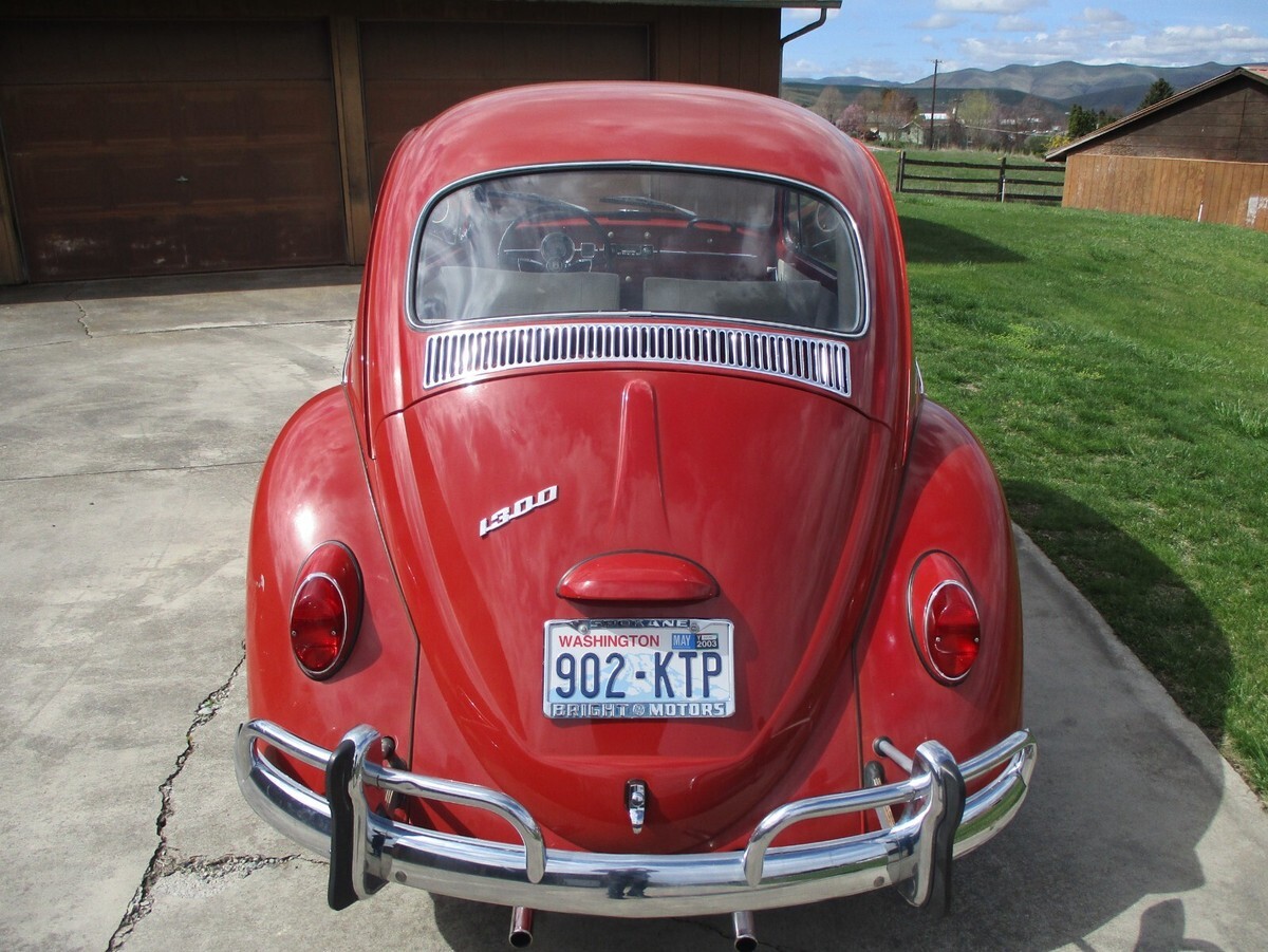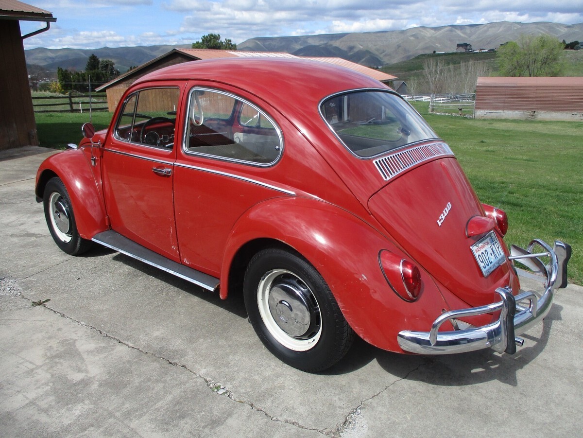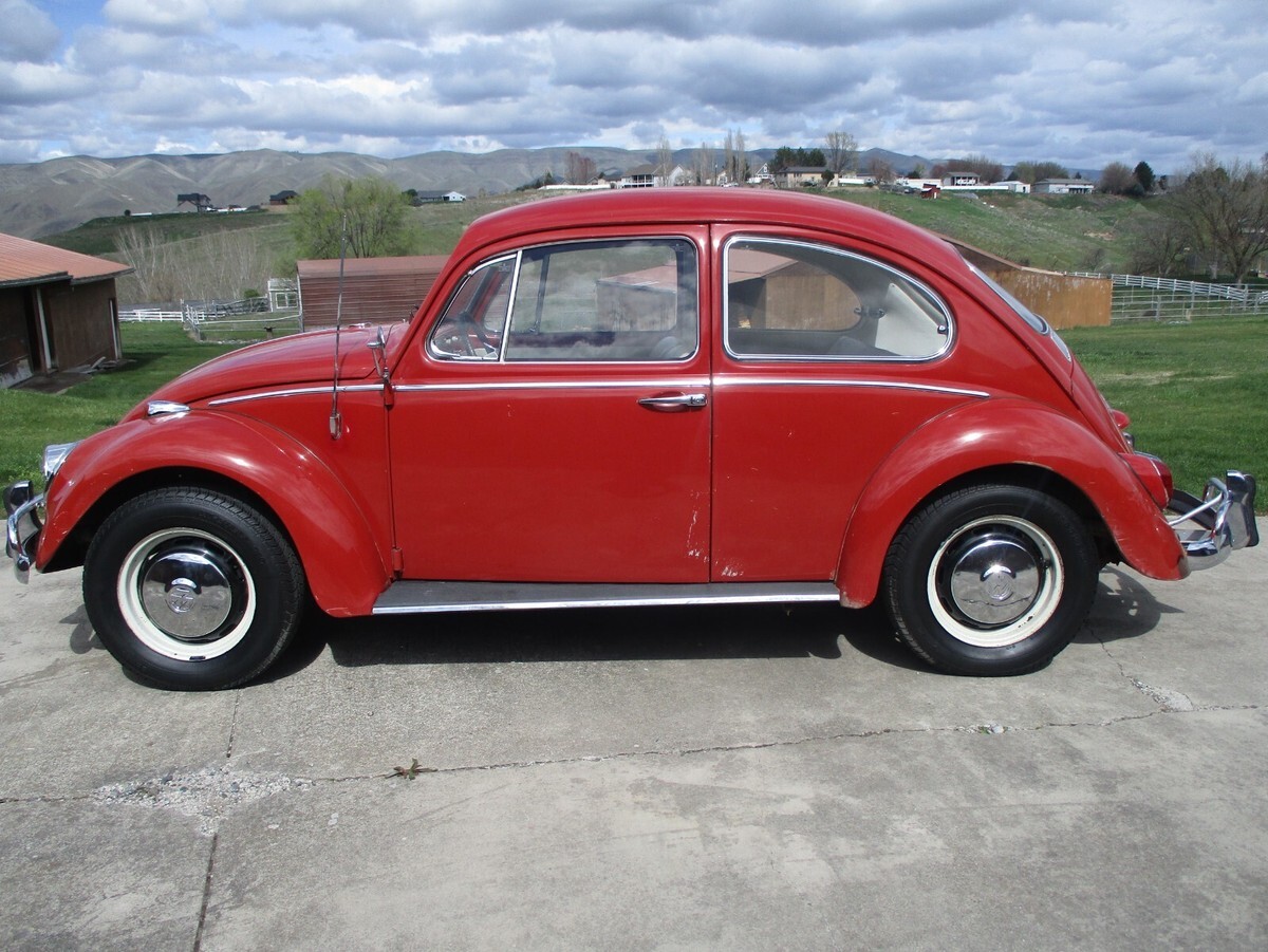 Up for sale is a very original and low milled 1966 VW Bug 1300 with only 70972 miles ever put on the car and it is a one owner from new. Yes, one lady owner from new and parked in storage in 2003. Now out of storage and ready for a new owner. A fresh tune-up and service has just been completed, by well-known My Mechanic LLC. New Carb kit, new valve cover gaskets, new spark plugs, new dist cap, new dist rotor, new dist condenser, new contact set, new ignition wire set, new fuel filter, new chock stat, new fresh air hose and other hoses. A complete brake job was completed in 2022 with new everything, also new shocks were added at the same time. (it runs and drives very nice) Clutch is smooth and it shifts nicely. (fun to drive) The body is all original as is the red paint throughout, but it does have a few scrapes and scratches and a small ding or two but still look good for its age. All glass is good, but there are 4 very small rock chips in the windshield The door windows do roll up and down as they should and look great. All lights work as dose the radio and the windshield wipers, but the gas gage is not working at this time? The interior looks very nice and is all original. (please look at all pitchers closely) This VW was bought from Bright Volkswagen of Spokane Washington on May 7th, 1966, for a total of $2014.81. Costs were $1799.00 for the car plus $35.00 for white wall tires, $24.50 for Undercoating, $69.50 for the radio, $5.95 for mirror, and $15.10 for bumper guards. The original tool kit and jack in its original bag do come with the car as dose the original window sticker and bill of sale and other paperwork. My friend just received the car and now it is for sale, so I'm listing it for him. I will take all questions to him. Buyer is responsible for shipping and all shipping costs. We will help with loading on our end and in anyway we can or just come drive it home. For your questions, please call Bill 208-750-0000.
