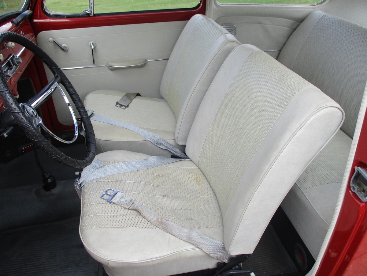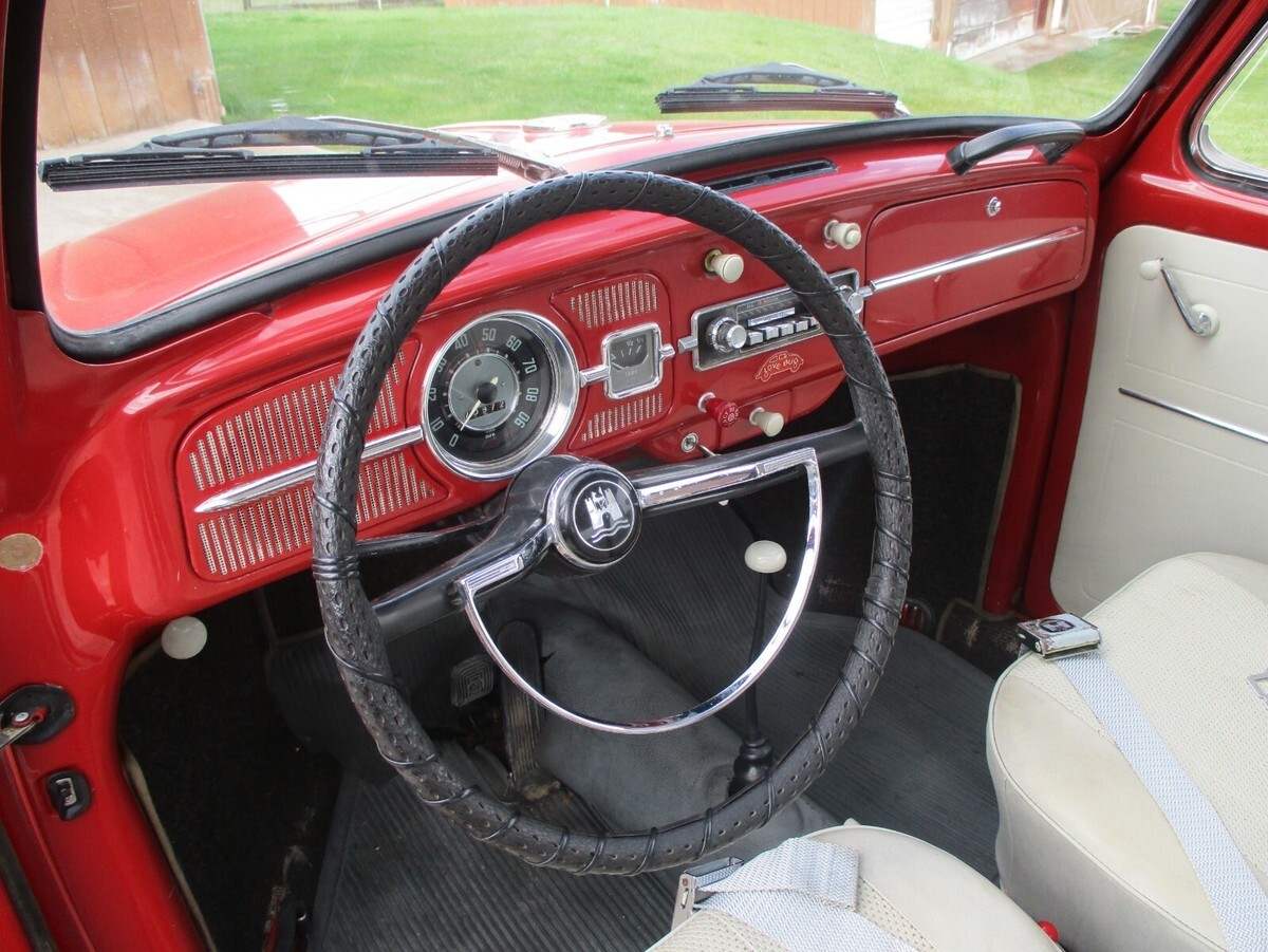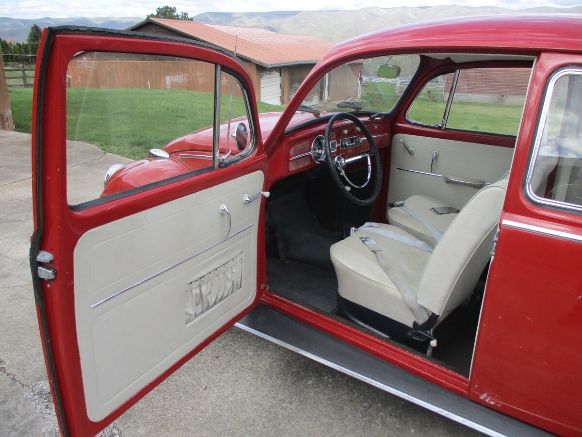 Up for sale is a very original and low milled 1966 VW Bug 1300 with only 70972 miles ever put on the car and it is a one owner from new. Yes, one lady owner from new and parked in storage in 2003. Now out of storage and ready for a new owner. A fresh tune-up and service has just been completed, by well-known My Mechanic LLC. New Carb kit, new valve cover gaskets, new spark plugs, new dist cap, new dist rotor, new dist condenser, new contact set, new ignition wire set, new fuel filter, new chock stat, new fresh air hose and other hoses. A complete brake job was completed in 2022 with new everything, also new shocks were added at the same time. (it runs and drives very nice) Clutch is smooth and it shifts nicely. (fun to drive) The body is all original as is the red paint throughout, but it does have a few scrapes and scratches and a small ding or two but still look good for its age. All glass is good, but there are 4 very small rock chips in the windshield The door windows do roll up and down as they should and look great. All lights work as dose the radio and the windshield wipers, but the gas gage is not working at this time? The interior looks very nice and is all original. (please look at all pitchers closely) This VW was bought from Bright Volkswagen of Spokane Washington on May 7th, 1966, for a total of $2014.81. Costs were $1799.00 for the car plus $35.00 for white wall tires, $24.50 for Undercoating, $69.50 for the radio, $5.95 for mirror, and $15.10 for bumper guards. The original tool kit and jack in its original bag do come with the car as dose the original window sticker and bill of sale and other paperwork. My friend just received the car and now it is for sale, so I'm listing it for him. I will take all questions to him. Buyer is responsible for shipping and all shipping costs. We will help with loading on our end and in anyway we can or just come drive it home. For your questions, please call Bill 208-750-0000.