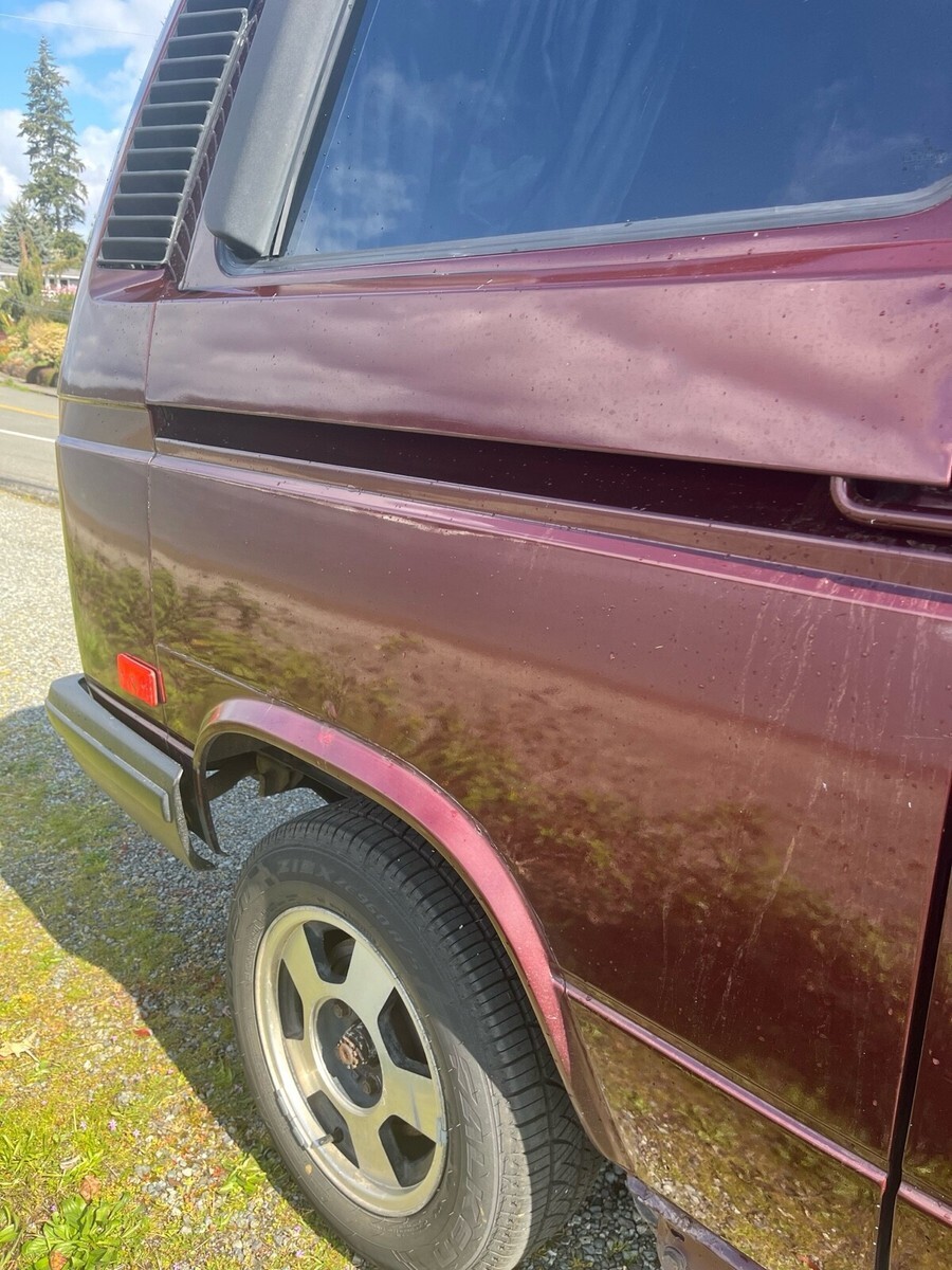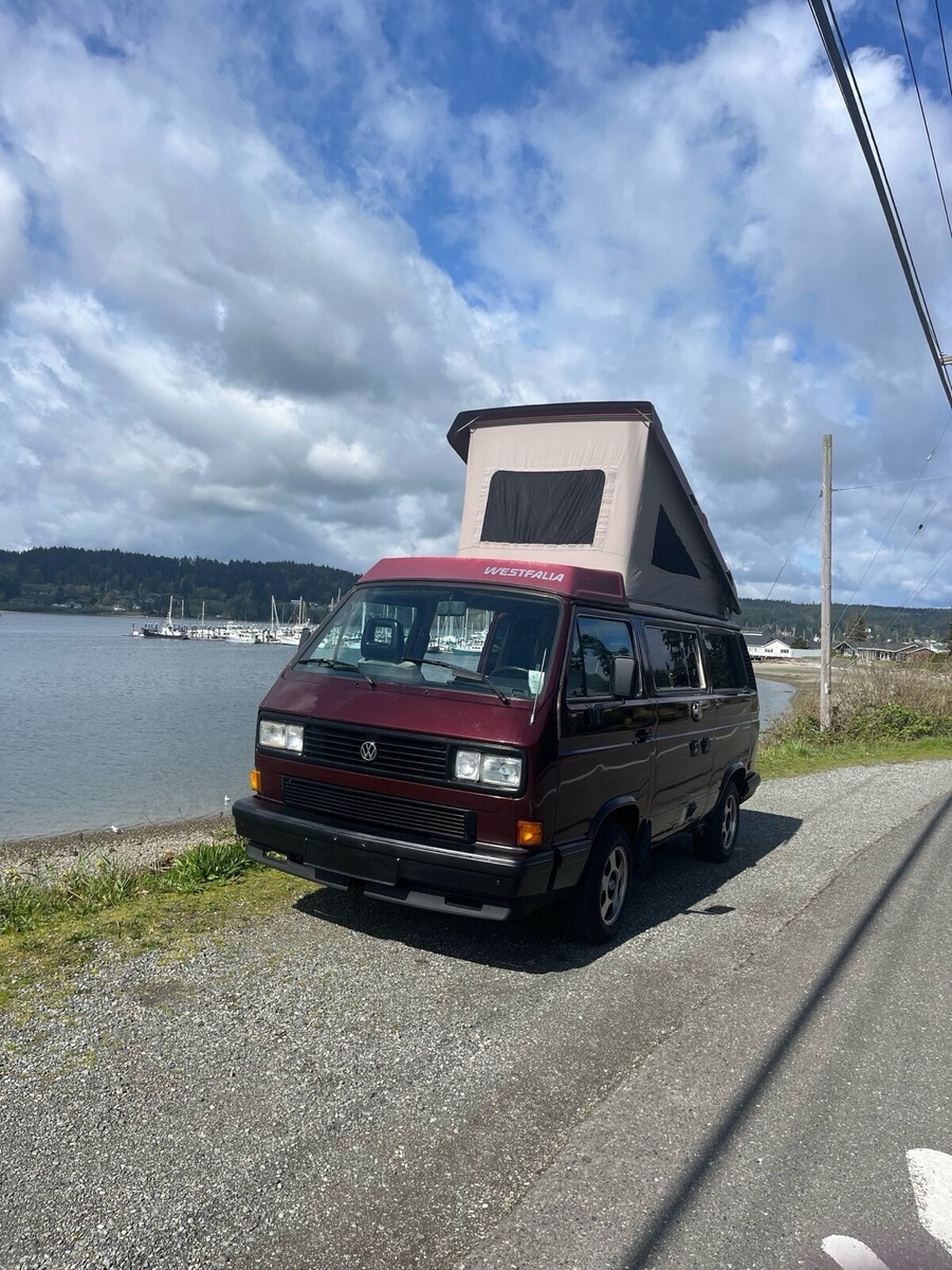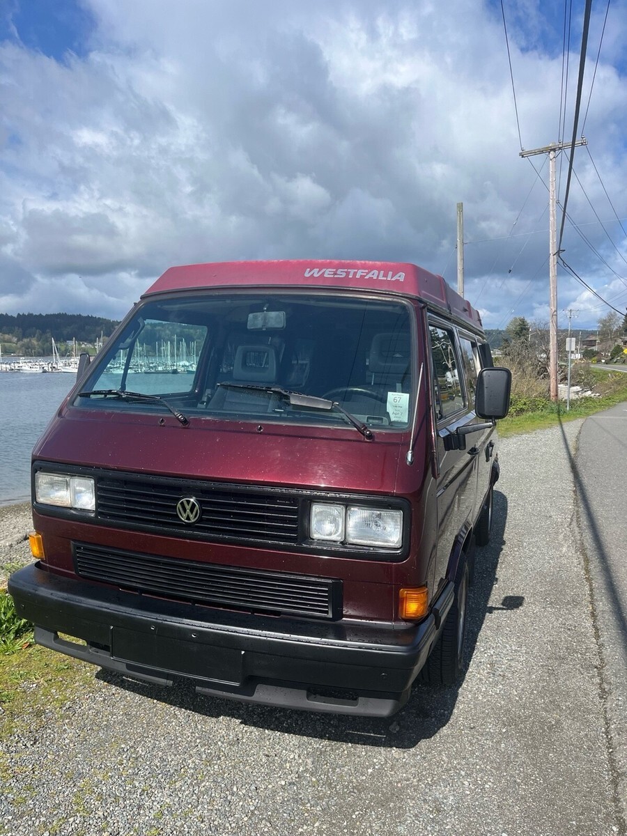 This 1991 burgundy Volkswagen Vanagon Westfalia camper is pretty much all original. The owner has had it for 3 years. The vehicle is drivable and is mainly used for weekend drives.
