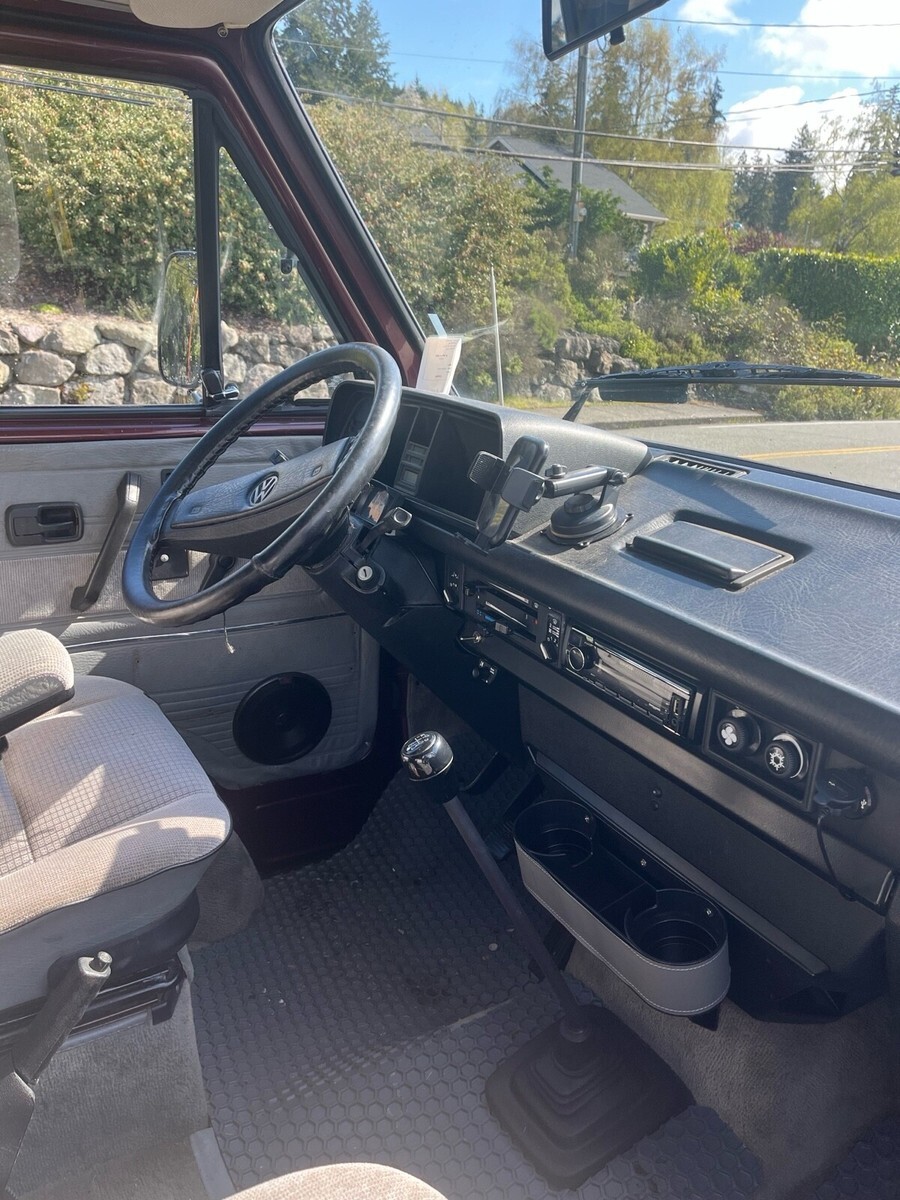 Well cared for Westfalia, originally from Canada, so odometer is in Kilos, so mileage is about 215K… color is actually Burgundy, but that wasn’t an option of choices on the listing.