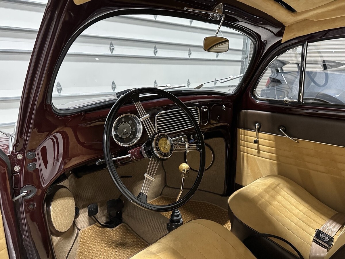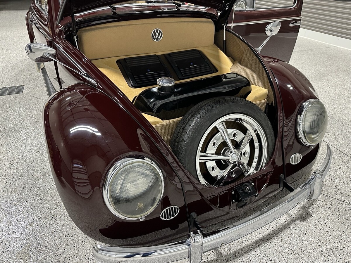 This 1956 Volkswagen Beetle is a beautifully modified vehicle with updates to the exterior, interior, and drivetrain. The owner has had it for 1 year and has mostly used it for car shows. The vehicle runs great and is in excellent condition. The color is burgundy, and the title is clean.