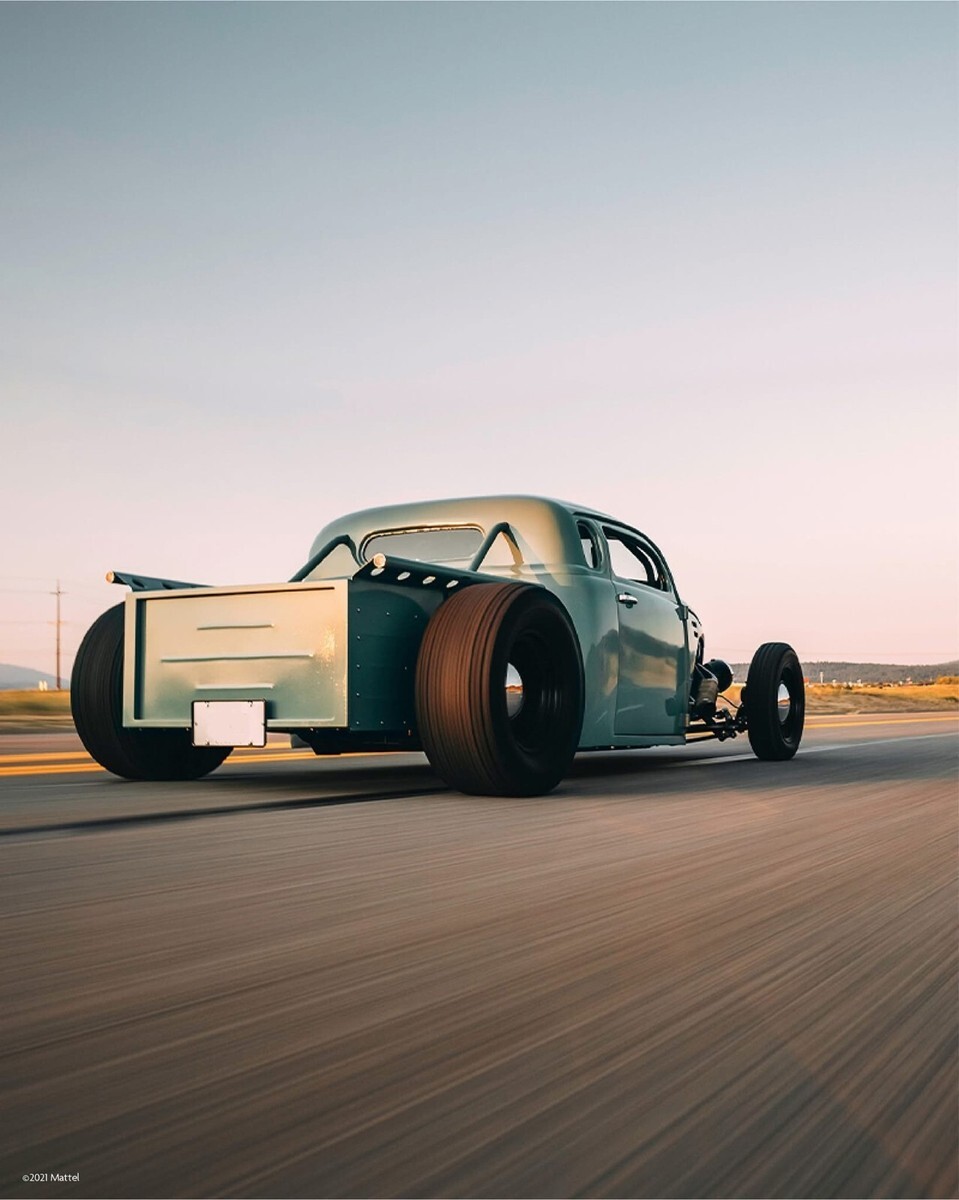 Interior has bomber-style seats with racing harnesses, engine-turned trim, Dynamat insulation, power windows, USB ports, and a B&M pistol-grip shifter. A quick-release JOES steering wheel, Auto Meter tachometer, as well as a temperature gauge, voltmeter, fuel gauge, and oil pressure gauge. Everything can also be monitored on the Holley display.