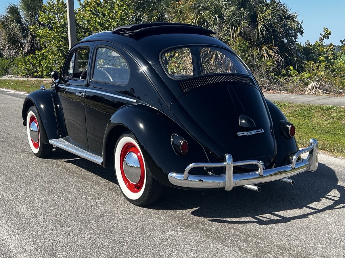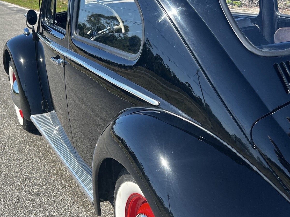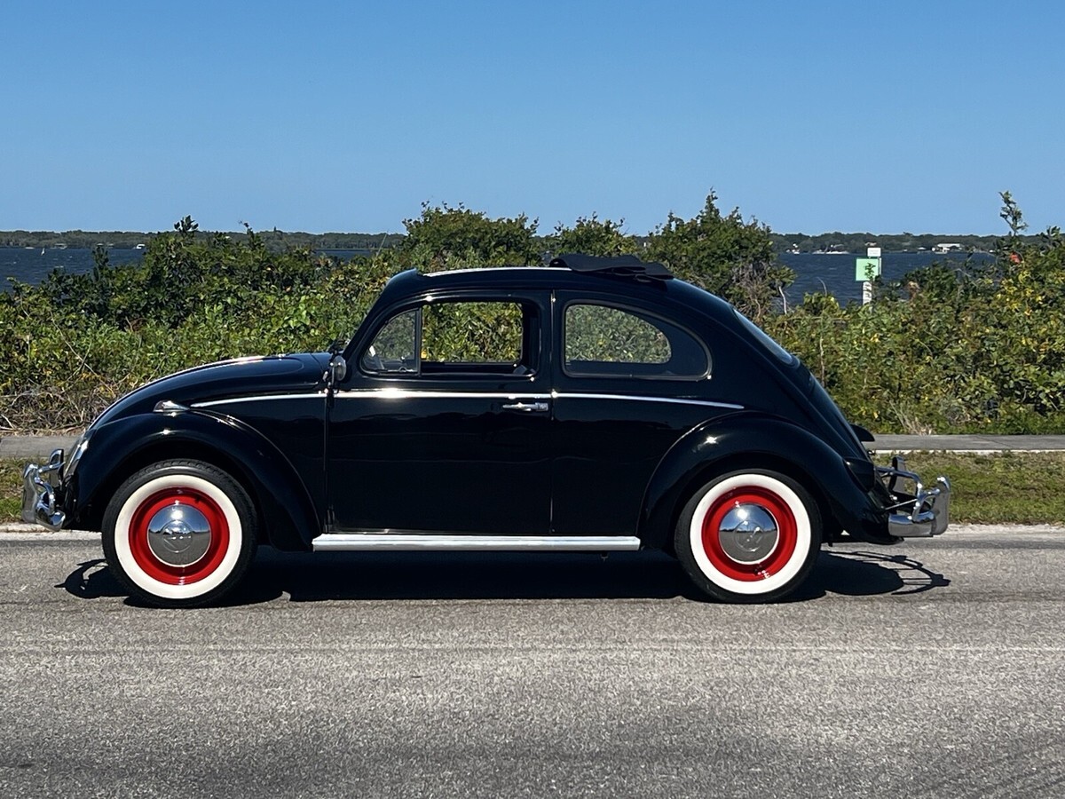 1960 VW Beetle * original numbers matching engine * 1200cc * 4 speed transmission * Slider roof ( California roof) * Arrow straight Jet black paint * red painted wheel with Silvertown wide white tires * July 1960 build with June 1960 engine, dates are perfect, runs and drives excellent.