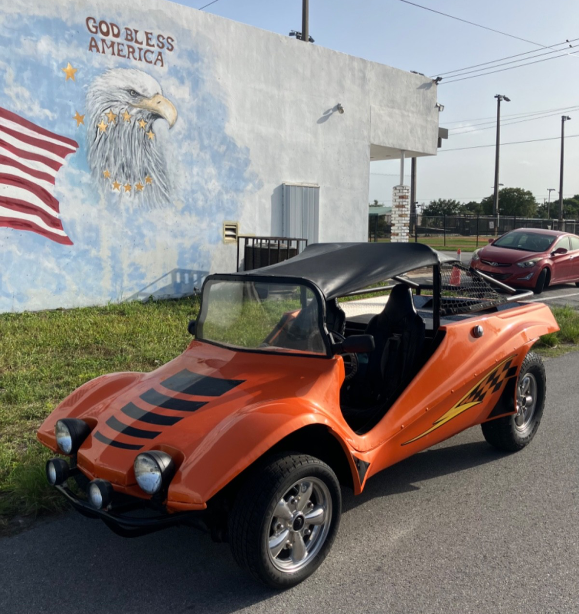 Nicely appointed with:5 Spoke Mag Wheels 15"all aroundHeadlights / Brake LightsDriver and Passenger Side Mirrors Rear View MirrorFull Welded in Roll Bar-Roll Cage for performance, integrity and safetyInterior Diamond Plate Details"Pick Up" Bed Area For Hauling Cargo / Side Cargo Nets with SnapsCargo Area has a Removable Seat Cushion For Rear PassengersWorking HornBrand New BatteryBattery Safety BoxNice Floor CarpetEmpi Bucket SeatsDeist Seat BeltsStinger Exhaust SystemEmpi ShifterLamborghini Orange Pearl PaintBuy It Now or Make OfferWill not last, grab it today at this amazing price before its gone.Would be hard to find another one this nice and clean for the money.I can make a deal for you and if your serious maybe I can save you more just contact me. Phone : 954 232 8000 (private seller not a dealer)A small $500 deposit secures it today.Being sold as-is condition, all sales final, no returns, credits or refunds. Clean and clear Florida title.Finally you can enjoy summer in an affordable super cool vintage dune buggy if you make it yours.Items worth noting:The turn signals are currently not working and the Auto Meter tach is not currently working...If I free up from work and find the time I am going to try and get these items fixed in the next few days.Overall, this is a fun affordable, collectable and reliable classic car that can be enjoyed right now and improved upon while you are driving it and using it.Buy With Confidence / Check My Feedback / Private Seller / 20 years On Ebay.Terms: Shipping is buyers responsibility but will help with the loading. Immediate $500 NON REFUNDABLE deposit due at agreed price. Balance is due in full within 48 business hours by cash in person or bank to bank wire.Sorry I am not using Caramel. Sold as-is / final sale.Car is over 50 years old and is sold as is and there are no warranties. No refunds and no credits. Deposit is nonrefundable. I encourage to look at the car prior to purchase or If you’d like to send someone to look at it please do before buying.I have 100% feedback and I would like to keep it that way.Thanks for looking and please ask any questions or have any inspections done prior to purchase.Also for sale locally - I reserve the right to terminate this listing at any time.I accept the following forms of payment: Wire Transfer, Cashier's/Bank check (certified from US bank) or Cash in Person. Personal check (once cleared).Shipping is buyers responsibility but will help with the loading.Sold as is with no warranties.If you have any questions please feel free to ask.- Make: Volkswagen