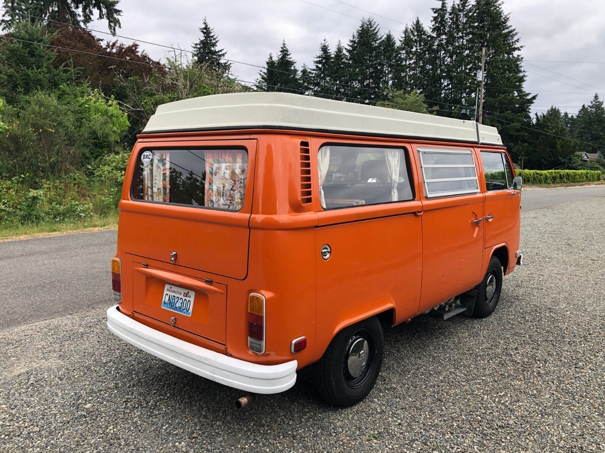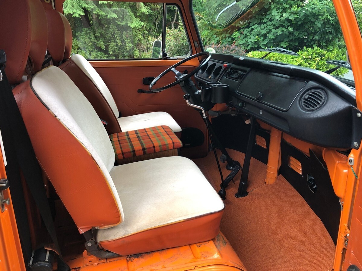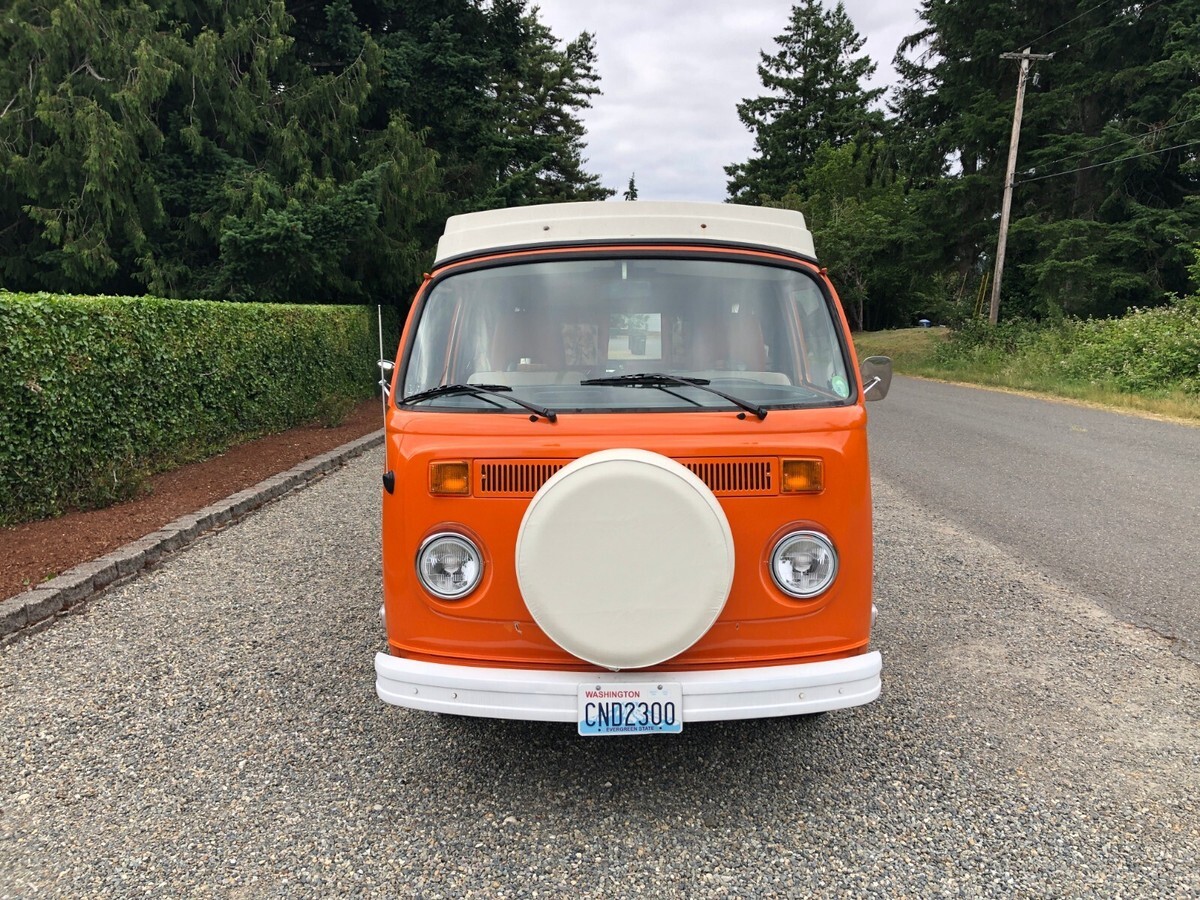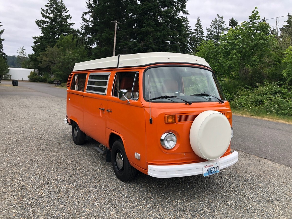 For sale is my 1974 Volkswagen Westfalia Campmobile Deluxe (VW Bus) with approximately 118k original miles (5-digit odometer) and a clean Washington State title in my name. This bus is in great condition and is a desirable “late bay window" model in a rare and sought after specification, Orange on Orange with every factory option (deluxe model). Being a deluxe means this bus has a functional stove with propane tank, power sink (instead of hand pump), power refrigerator (instead of icebox), as well as a movable storage box that can be used as a step to get to the upper bed. All equipment functions properly and are used regularly. Being a later Westfalia model the bus has a bed in the pop top that can sleep 2 people (unlike earlier forward hinged pop-top models), safer crash-structure in the front, power front disk brakes (brand new), as well as the reliable type 4 engine (a bit more power but still quite slow). This bus in particular was sold new in California until the 1990’s when the previous owner to me brought it to Washington State. As a result, the bus is very clean all around with the only rust spots being a small section near the windshield and a spot where the aux battery leaked during previous ownership (this spot does not go into the wheel arch or battery tray, only the side). See photos. There is also a little on the surface in the usual location under the foot step pad. Still completely solid. The bus has been repainted at one point with a few cosmetic flaws due to regular use, however it presents quite nicely particularly for a bus of this era. While the bus was already in very good shape when I purchased it, I have had numerous items refreshed under my ownership. Mechanically, the bus has its original engine with all cold-start components working properly (including thermostat). Oil changes and valve adjustments have been done every 3,000 miles per factory spec. I also had a full inspection done by a local shop (Franklin’s VW Werks) who serviced the bus last year and gave it a clean bill of health in preparation for a camping trip to California/Nevada. The bus comes with a binder full of invoices for parts and service done to the bus since I have owned it. A few recent items include: Brand new front disk brake setup (calipers, pads, rotors) Front and rear brake hoses, brake fluid Full ignition system refresh (spark plugs, distributor points, cap, rotor condenser (all Bosch) Engine timing All vacuum lines replaced including brake booster hoses (important) All fuel lines replaced including the difficult fuel breather lines (very important) Fuel filler neck and filler hose replaced Shifter bushings replaced New H4 headlights installed Retractable seatbelts New intake manifold gaskets Rebuilt factory Solex carbs New CV joint/boot New Starter switch New Batteries - Both Main and Auxiliary Hankook Vantra LT tires all around (these are the proper commercial weight rating for a bus which helps tremendously with handling and stability. As well as many small cosmetic updates (new cab carpet, cabinet handles, kick panels, seals, etc). As is the case with these old buses there are a couple of items I would like to note for the next owner. One of the taillights is out on the passenger side (I can have this looked at). Radio does not work, we use a bluetooth speaker. Overall, this bus is a very sorted and original example that has many of the common issues with these vehicles already addressed. Included with the bus are its original owners manuals (one for the bus itself and the other for the camper equipment), original Westfalia ‘child’s cot’ that goes over the front seats and can be used for extra storage, original Westfalia rear hatch screen if you want to camp with the rear hatch open, fire extinguishers (the original one that came with the deluxe package, as well as a brand new one for safety), original jack and tool roll, two sets of keys (all original so ignition and doors use the same key which is nice, gas cap has its own key), cable for campground power to plug into bus, VW books, spare parts. If you have any questions or would like any additional photos please feel free to reach out. Thanks Volkswagen bus, transporter, kombi, vanagon, westfalia, riviera, synchro, baywindow