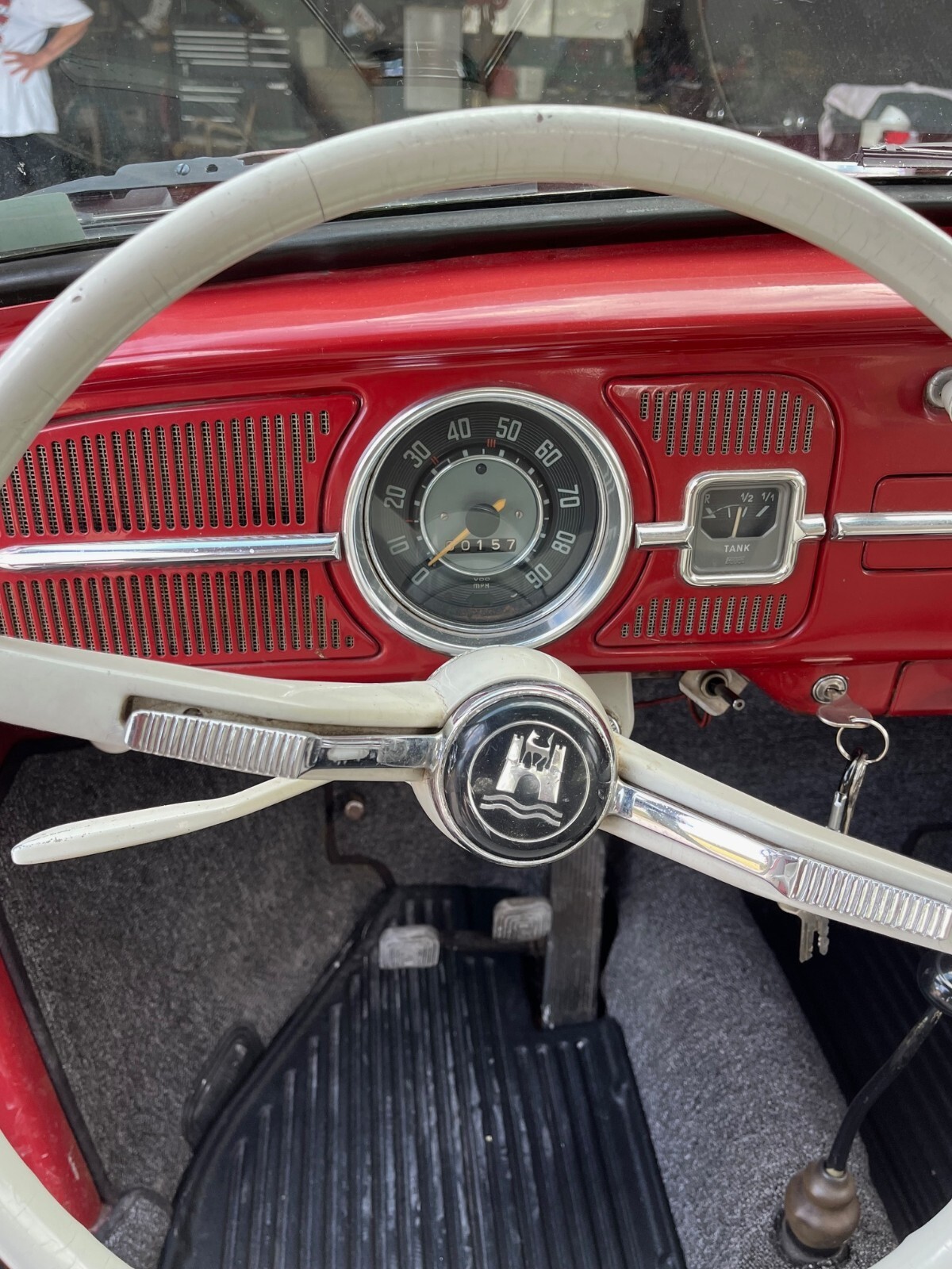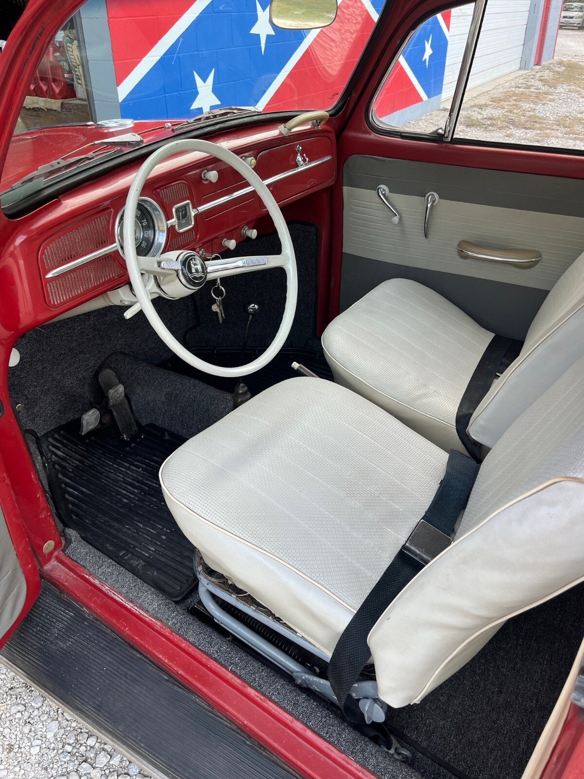 Fairly nice 65 Volkswagen beetle restored at some point. Few receipts in glove box. 12 Volt system driver quality paint. Updated 1600 cc motor runs strong. A couple of paint bubbles along driver side front fender seam. Solid undercarriage couple of oil drips not substantial. Brand new tires and brand new carburetor. Reasonable Reserve.