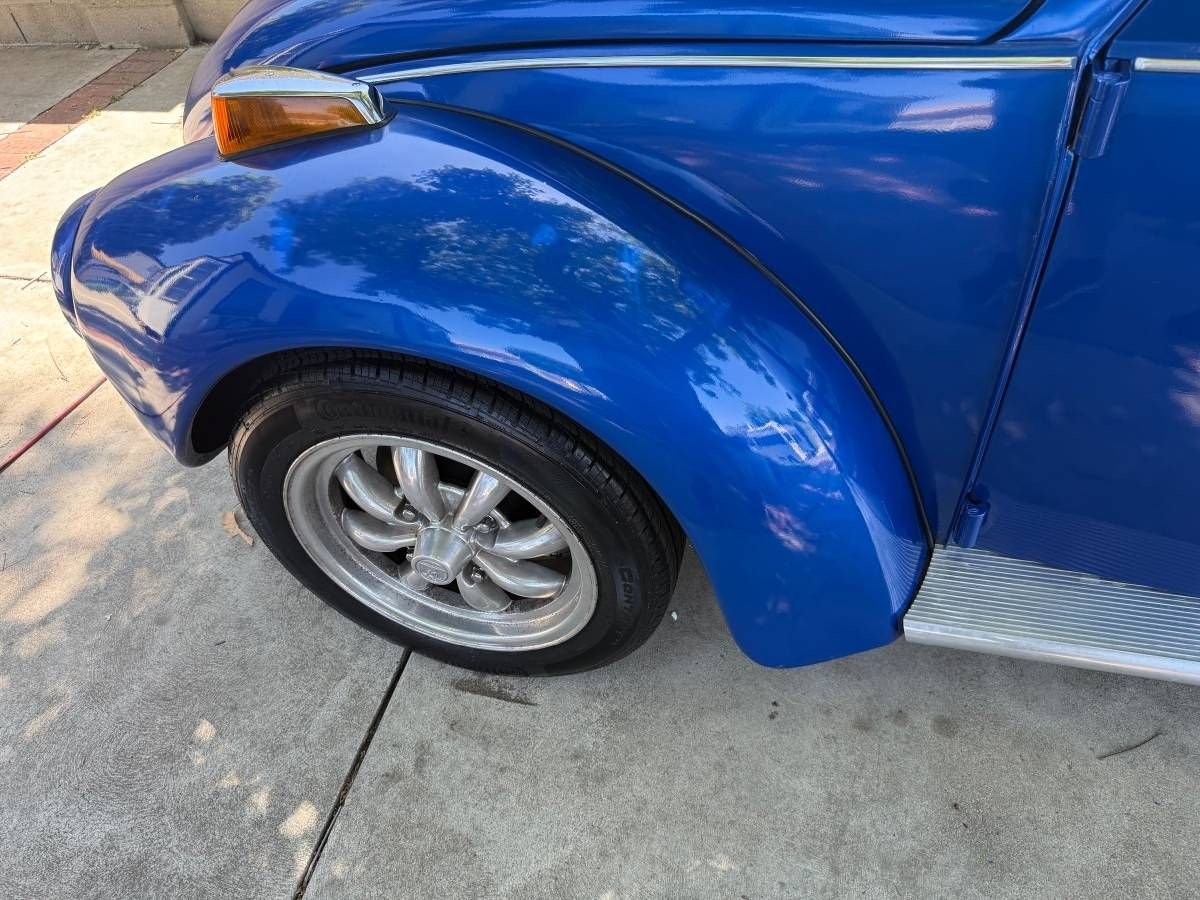 This 1972 Volkswagen Bug Convertible is a beautifully restored and lightly modified example of the beloved classic. The body shines in a vivid blue finish, matched with a clean gray interior and a well-fitting black soft top. With a reconditioned engine showing only 3,000 miles and tasteful performance upgrades like an Empi shifter, mag wheels, and a lowered stance, this Beetle blends vintage charm with an enjoyable driving experience. It's been well cared for by its second owner and is ready to hit the road or turn heads at shows.