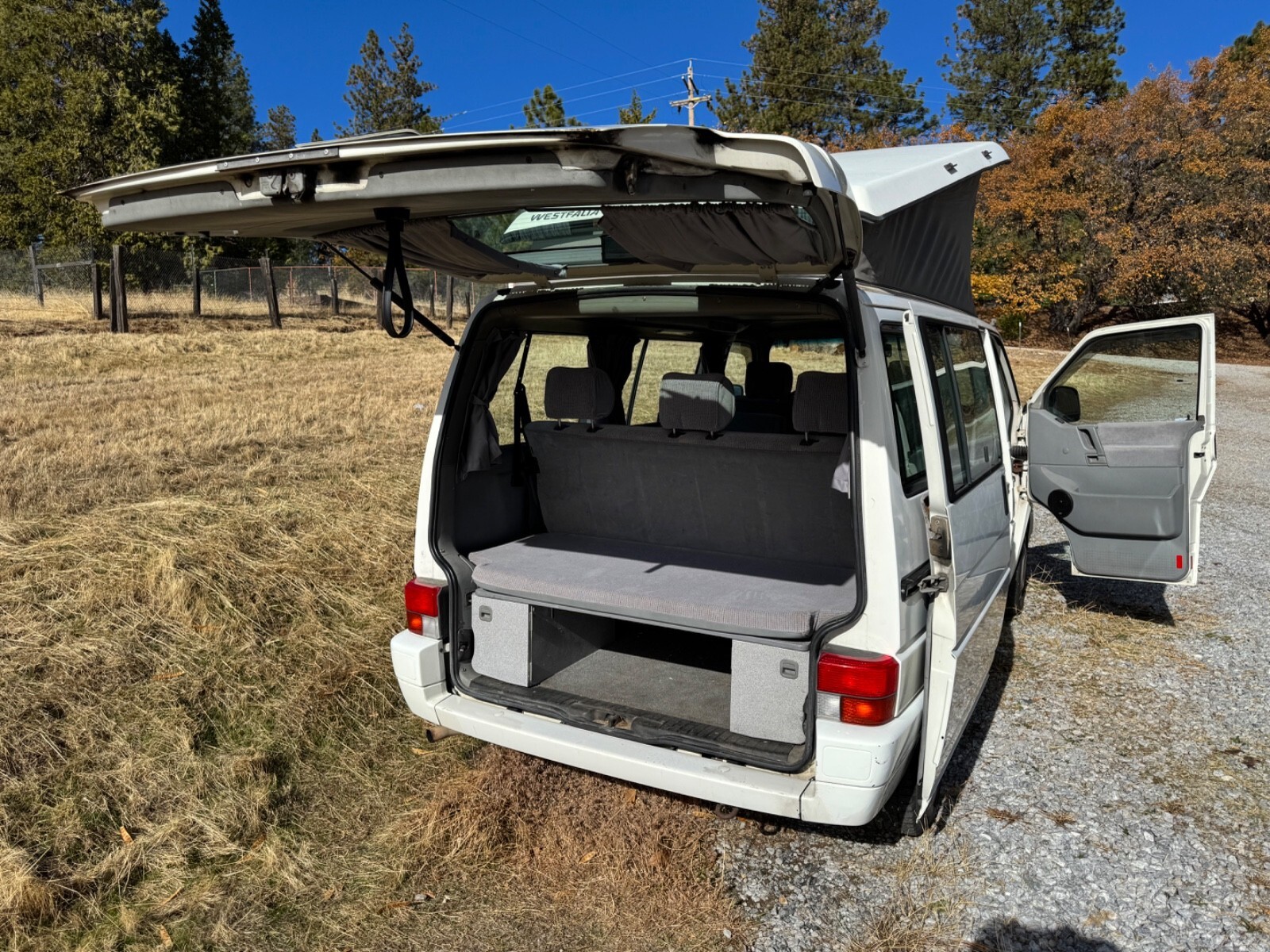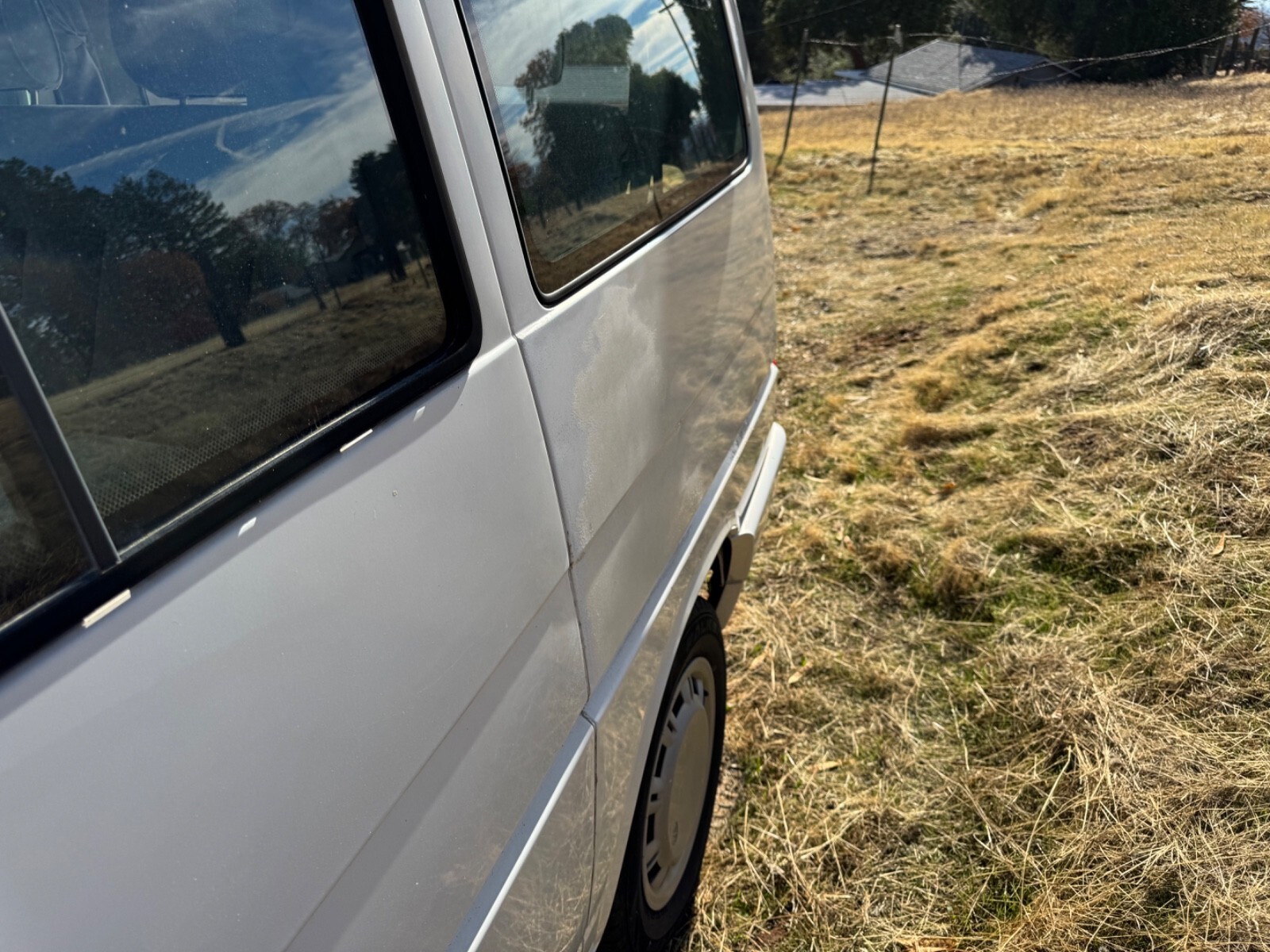 Senior owned Weekender EuroVan. The mileage is accurate but the engine was replaced around 150,000 miles. The body is in decent shape but there is paint wear and dents consistent with the age of the car. There is some surface rust on the windshield area. The interior is in good shape though dusty with some parts showing wear and tear. No rips in the seats. It had been running and driving but reverse gear is no longer working and the AC is no longer operational, so it has been sitting for 6-8 months. Lots of potential to either restore this example or make your EuroVan a weekender with a great parts donor!