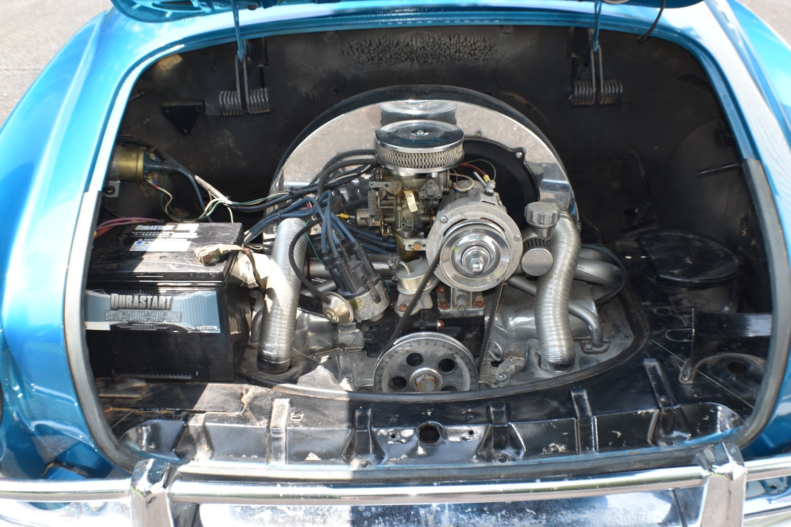 There is not much history on this car except that it came from Gateway Motors in Tulsa OK. The repaint looks good for the street and there does appear to be some bodywork in the doors and rear fenders. You could classify it as a good ‘20-footer’. There is no trunk latch for the engine compartment, but it stays closed. Floorboards appear to have some scale on them, but no holes.