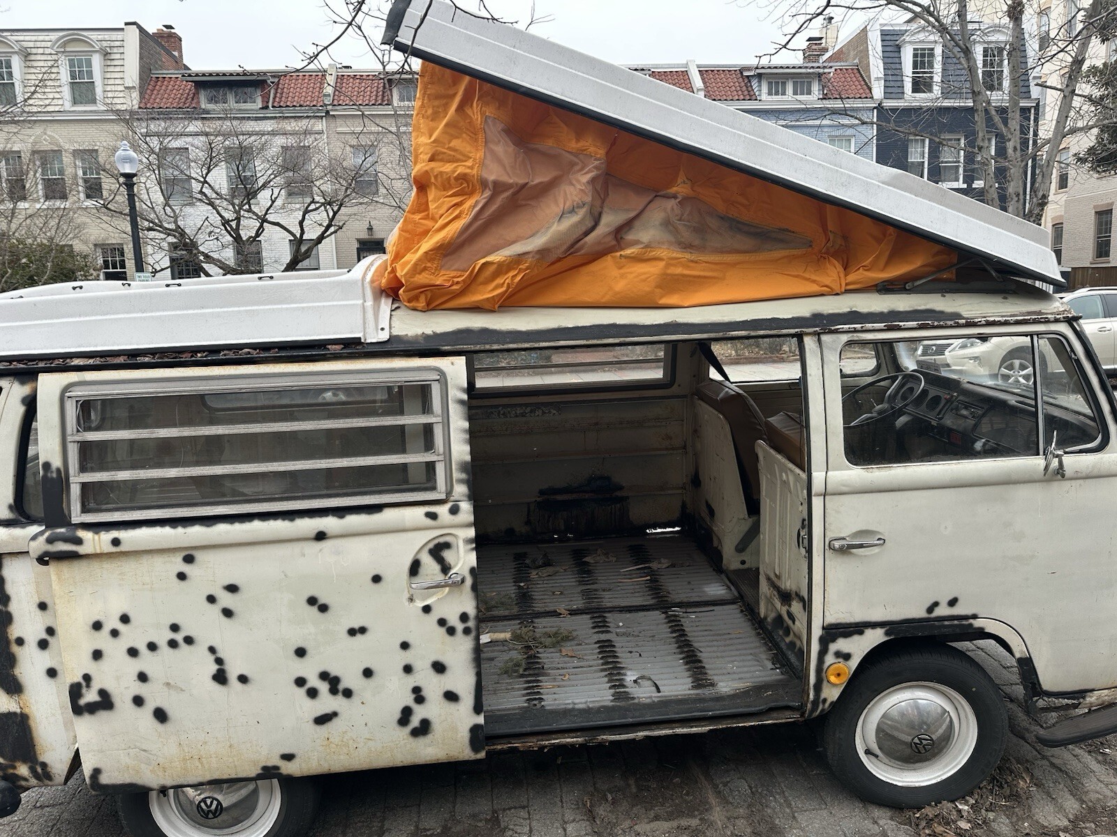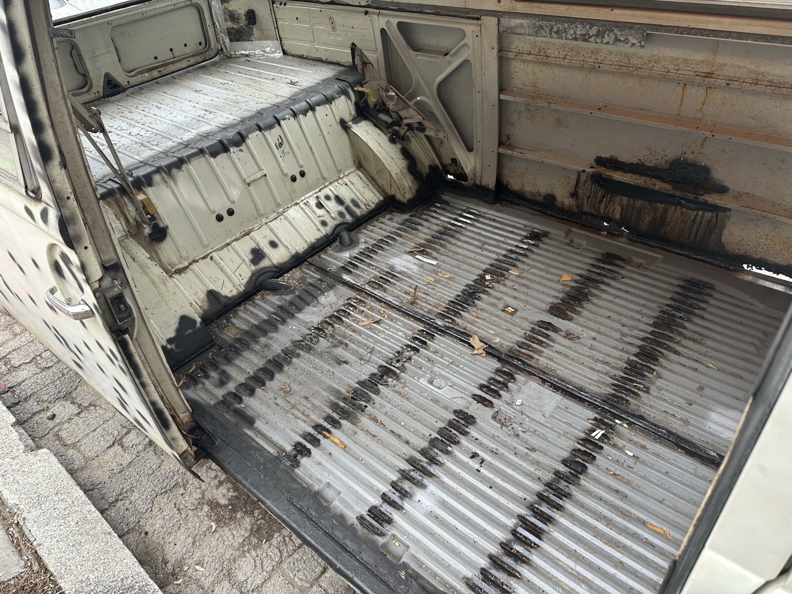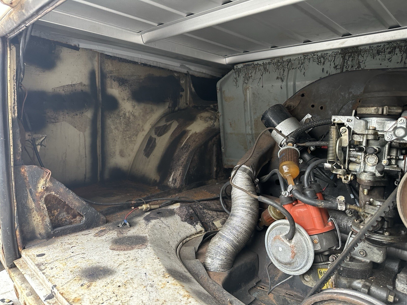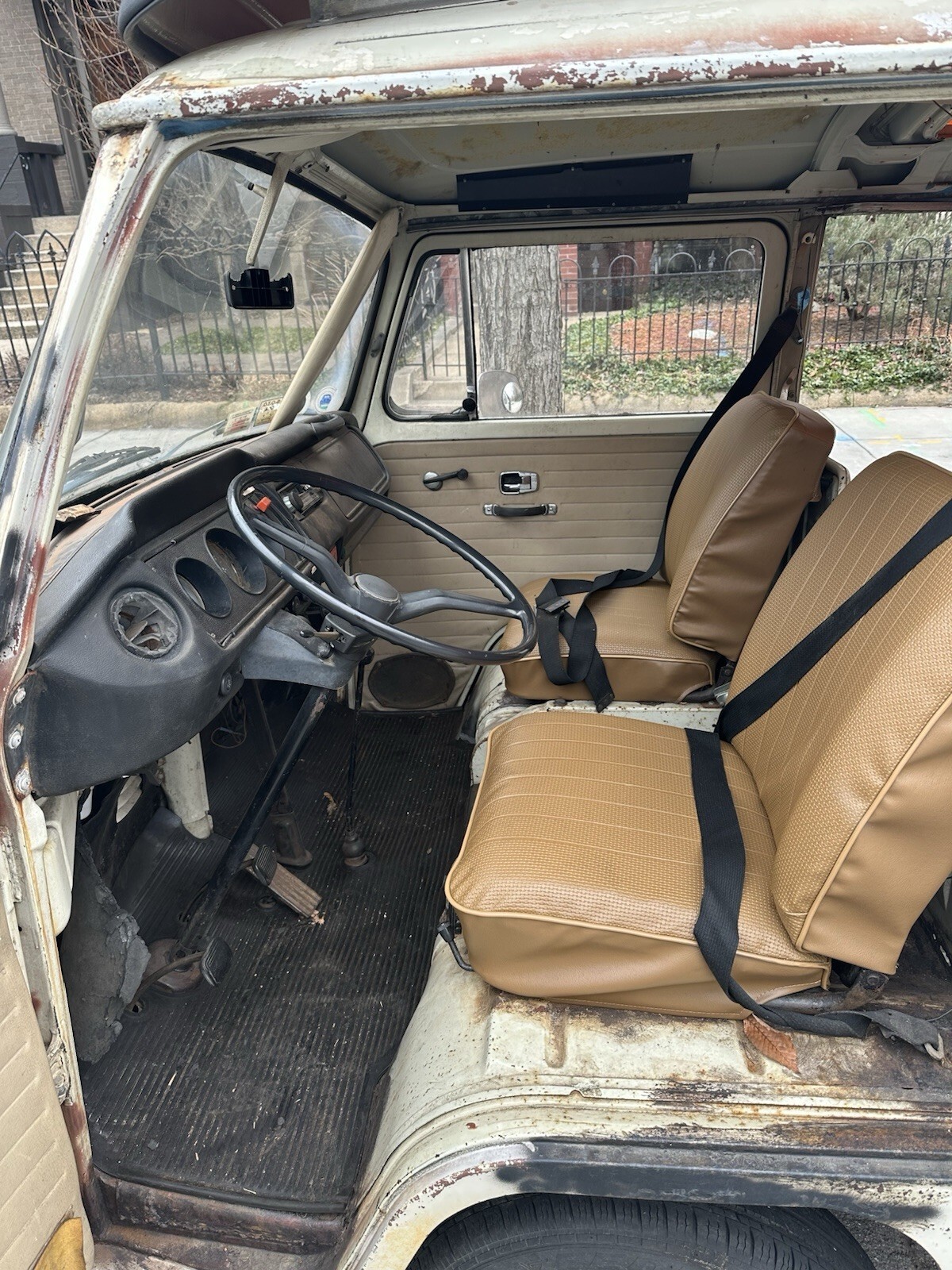 For sale is a 1969 VW camper van project. It runs much better than the rust would have you believe, the engine having been re-done by the previous owner. Refinished front seats, new cab mat, replaced the pop top tent, and refinished the fiberglass top in an off-white polyurethane. New floors that I welded in myself (see pictures). Gutted interior is included - the fridge/sink combo is in decent shape, as is the rear-facing single seat. All the hardware for the bench seat is there. Clean title. I can include a new Dometic RV fridge as part of the deal, along with a bunch of foam for use in new cushions, new water resistant fabric for use in upholstery, rolls of insulation, and the new cabinetry panels I cut out of marine grade plywood.