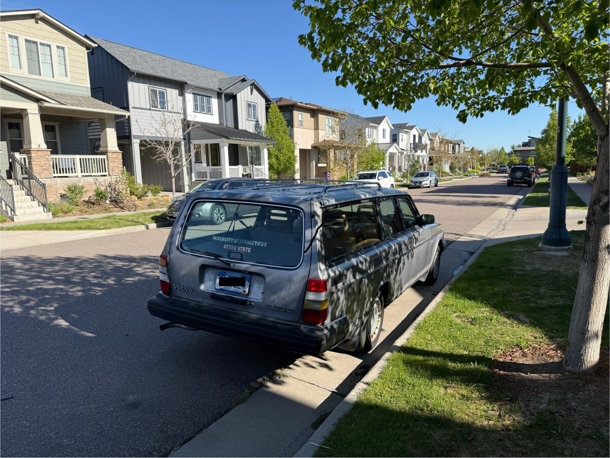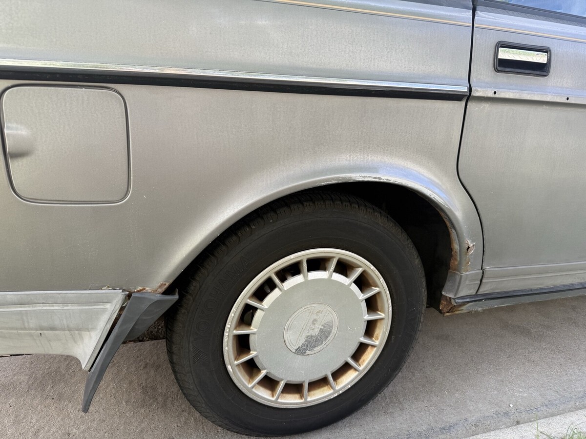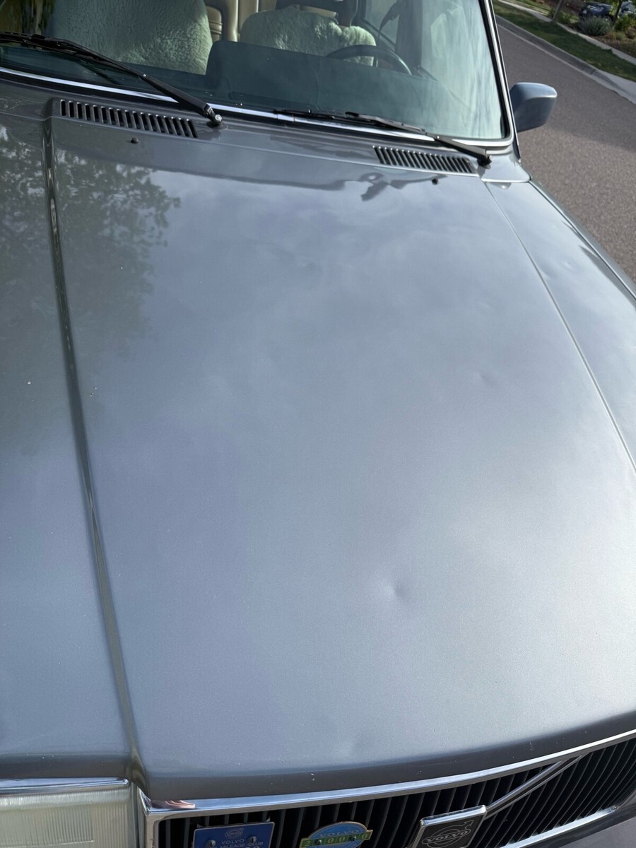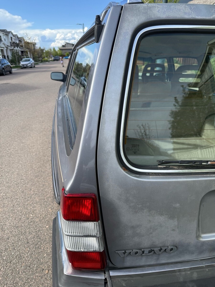 This 1989 Volvo 240DL wagon has been in my family for 36 years. It was regularly serviced and maintained. It was garaged for 30 years of its life. It’s still driveable but it’s starting to show it’s age and would be a great project for someone that is passionate about classic cars. Most of the parts are original. Tires are relatively new. Since trailering it out to Colorado in 2000 it’s been driven less then 1000 miles per year. The transmission is starting to slip which leads me to believe it will need some work in the near future to maximize its potential. Typically maxes out around 50 mph. The odometer stopped working at 306,636 and the engine likely has another 30,000 on it. The car still looks great but again is starting to show wear. In an effort to be totally transparent I am sharing pictures of items that are damaged/missing. The body has minimal rust, mostly at the base of the two rear tire wells. The hood experienced some hail damage last spring. The paint shows different signs of age based on two minor accidents over the years. Front leather seats show wear, currently covered with sheep skin.