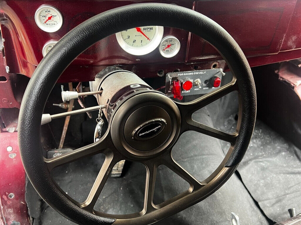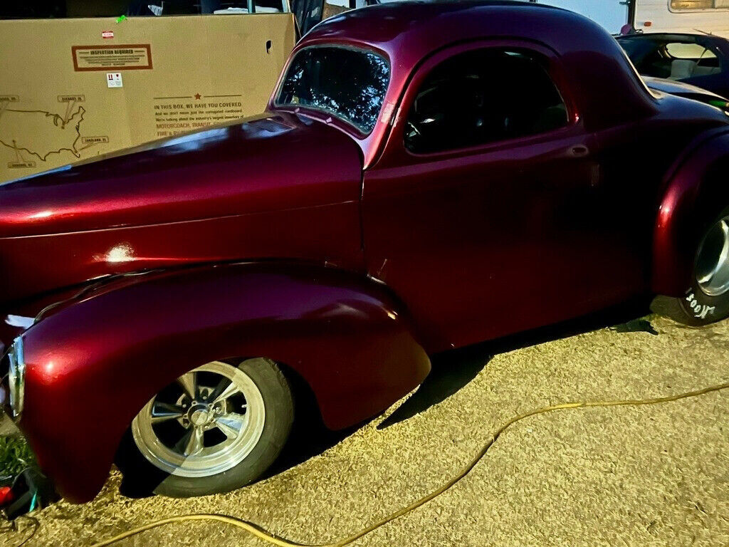 “This 1941 Willy’s Coupe Custom Replica is a high-performance machine that blends classic style with modern power and custom features. Under the hood, there is a 383 Stroker engine with 500+ horsepower, paired with short tube center dump headers and a 700R4 automatic transmission built specifically to work with the headers. It also features a shift kit, a 2800 RPM stall converter, and a Ford 9” rear differential with 4:11 gears and a Detroit Locker for outstanding performance. The rear end is tubbed to fit wider 31” tires and wheels mounted on Weld Racing wheels, while Wilwood 4-wheel disc brakes with an adjustable Summit Racing proportioning valve provide excellent stopping power. The car is equipped with a high-performance aluminum 4-core radiator, HEI ignition, and a Holly 750 CFM Brawler carburetor for smooth, reliable operation. Inside, there are Corbeau racing bucket seats with 5-point harnesses and a harness bar, offering safety and comfort during high-speed drives. The manual rack & pinion steering is complemented by a custom Lexani steering wheel ($1,000 value), adding to the car’s unique feel. A 3” stainless Borla exhaust system with remote control exhaust cut-outs ensures a powerful and customizable sound. The exterior features a striking Candy Apple Burgundy Wine paint job with chrome trim (still to be completed), while the car also includes suicide doors, though they remain incomplete (window regulators and latches are still needed, but the glass and seals are included—except for the cracked windshield, which is cracked from the installer and requires replacement). This is a rare opportunity to own a high-powered, custom-built car with a few finishing touches left to make it truly one-of-a-kind. The headliner nor the back dash are intact, however these are included with the sale and just need to be installed. The project does require a fuel gauge to be installed which is not included, but otherwise, this beauty is primed for some serious attention on the road.”