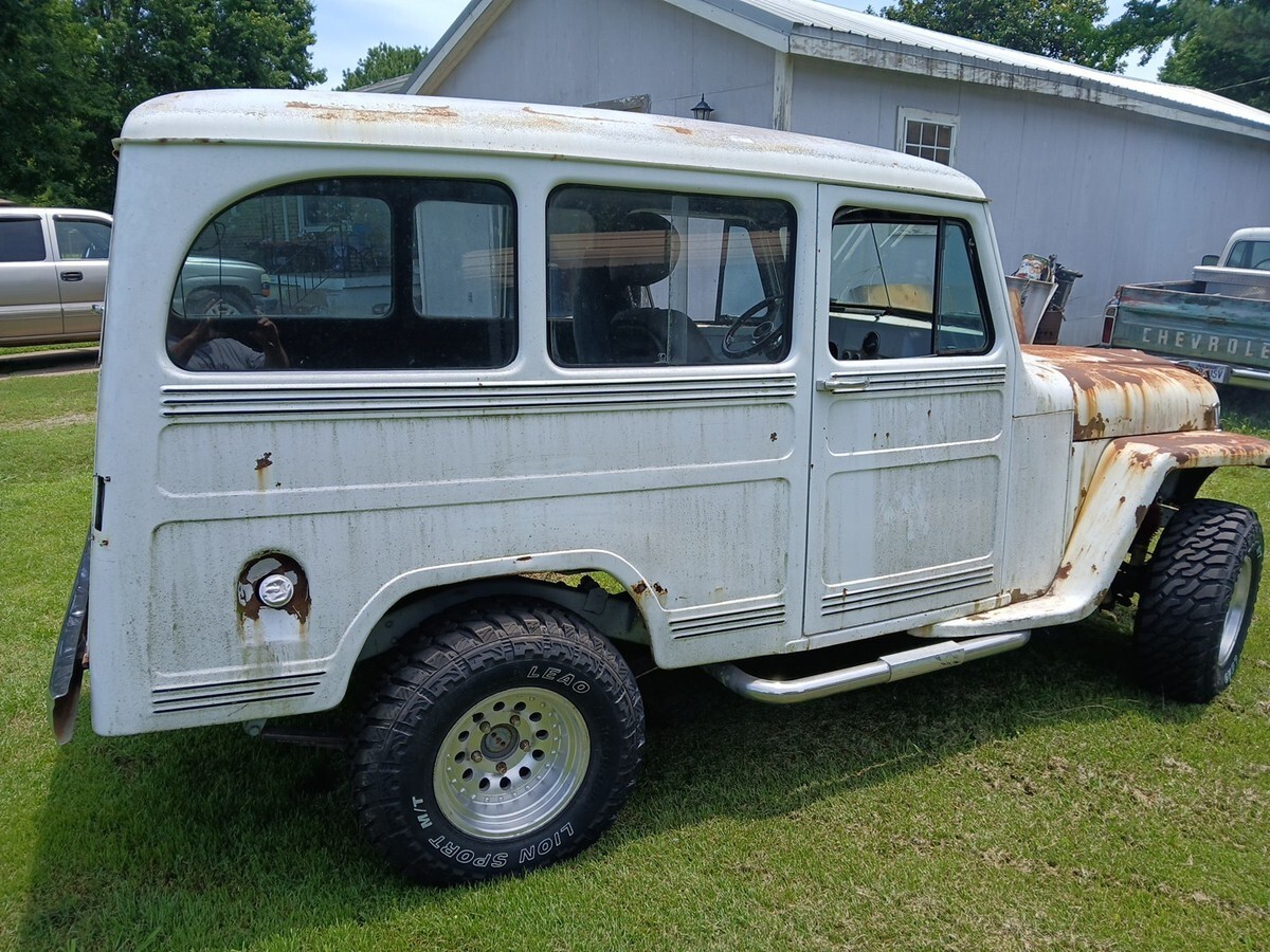 1955 willys jeep wagon,first for the good--- has rebuilt 4.3L v6 from 96 s10 and Serpentinebelt system, 3spd trans, new clutch, pressure plant and throw out bearing, new aluminum rad. and hoses, Dana 30 front end with disk brakes, new brake system from master cyl. to shoes/pads, has Dana transfer case, ford 9 inch rear end with limited slip, new fuel system with electric pump, it starts runs and drives.. have all new chrome for the head and tail lights, grill inserts, new window moldings and all new door moldings, new head and tail lamps and lenses, have all the interior panels but the need redone, brand new tires with less than 5 miles on them... now for the bad, has a small rust spot on pass wheel well, brake booster leaks, needs a new wiring kit, carb needs rebuilt, "has a dead spot", throttle cable is stiff, heater core shot, no exhaust on it yet...