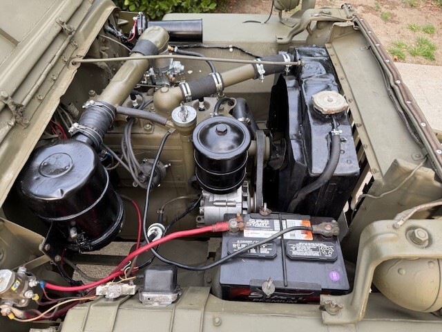 The Jeep has the original 4 cylinder 2.2L Go Devil WW2 engine and manual transmission.