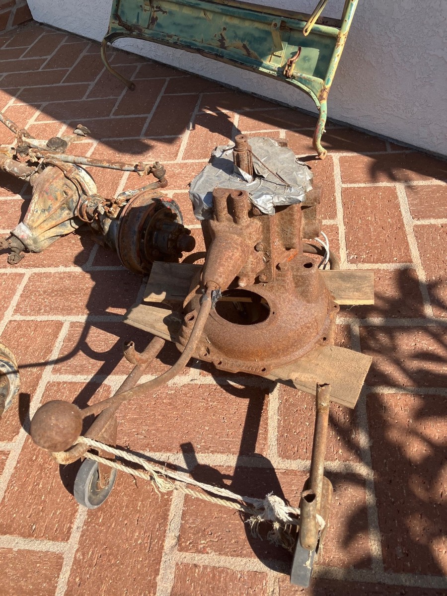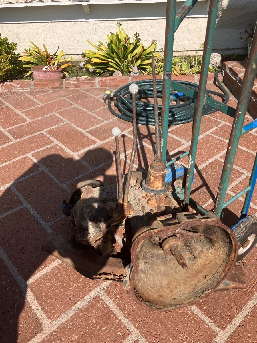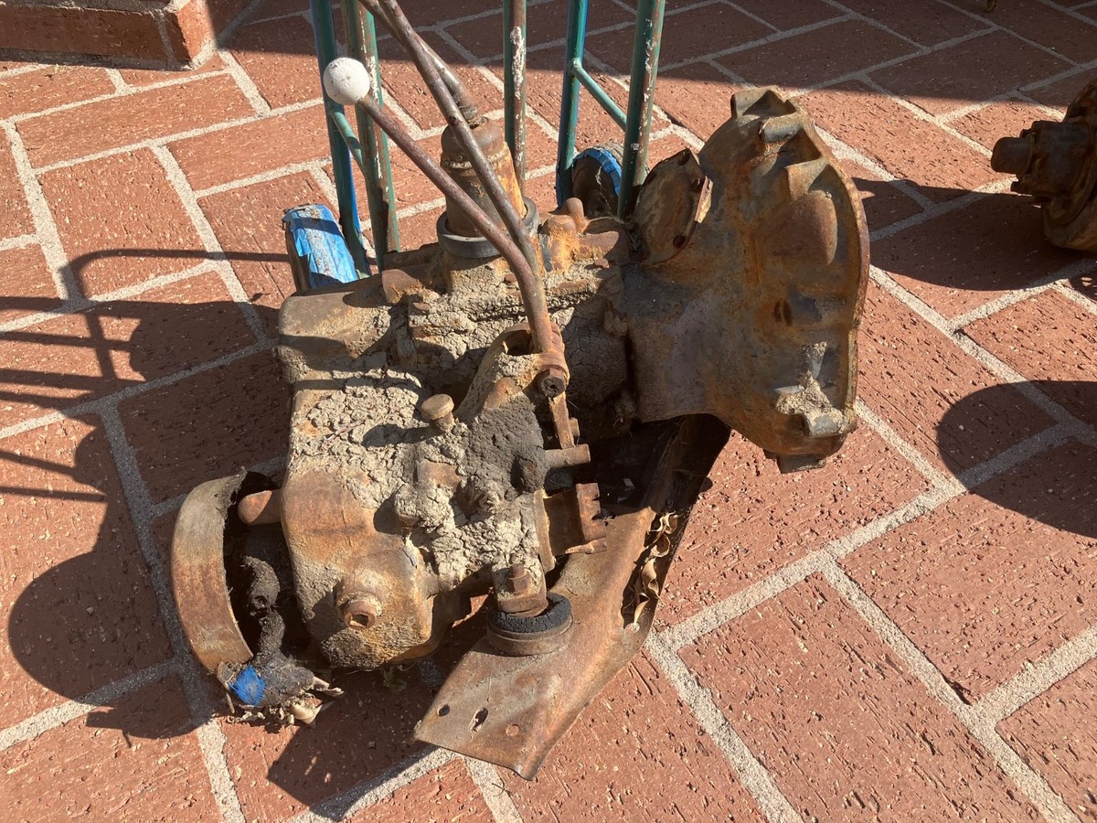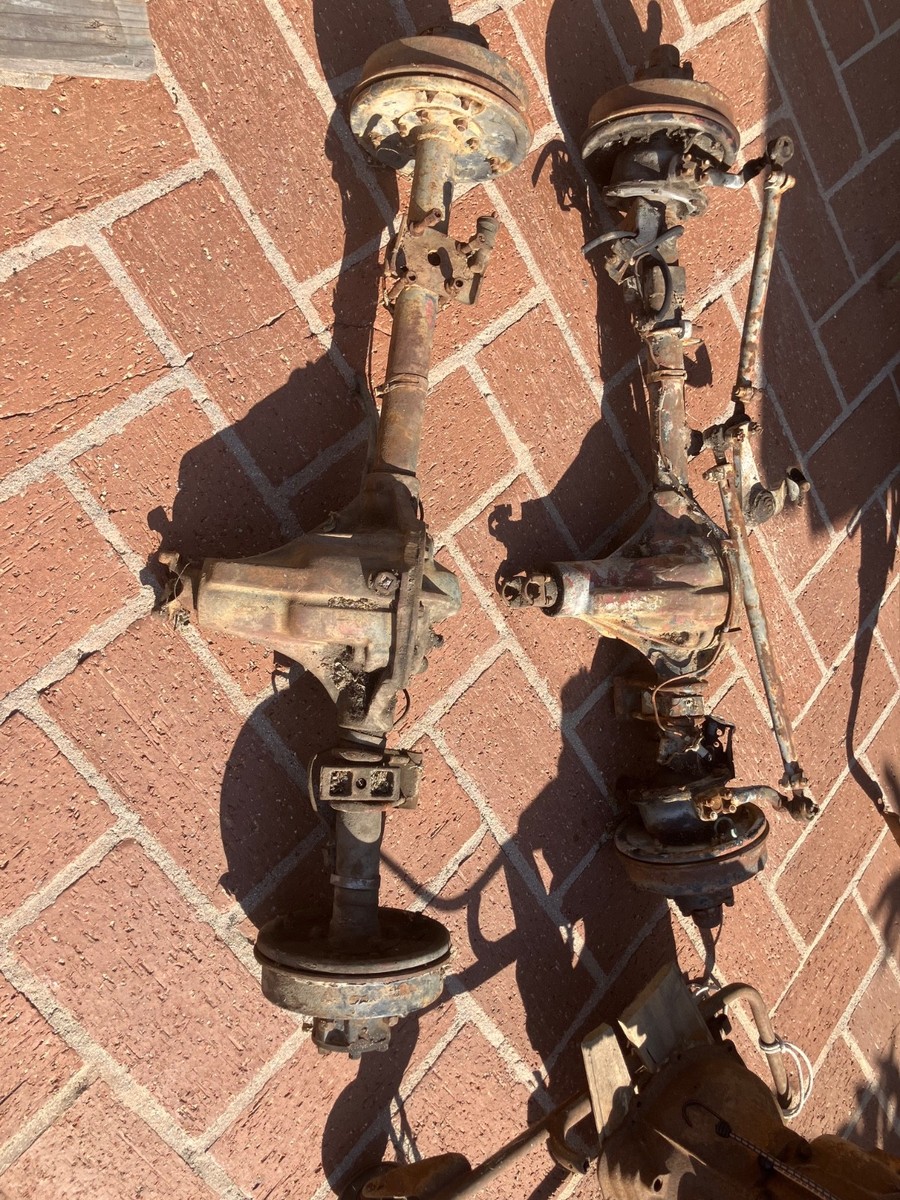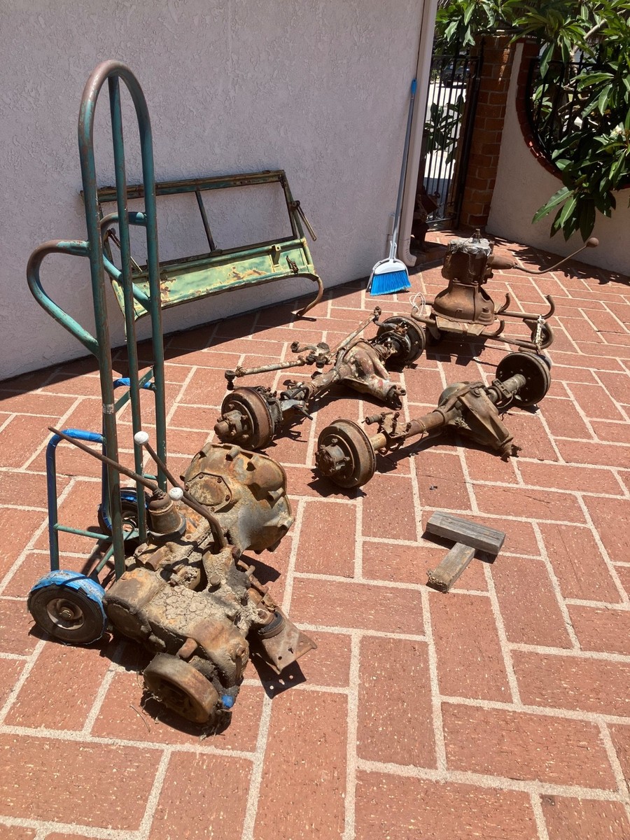 4.88 to 1 matched axles salvaged from 1944 Willys MB along with trans/transfer case, windshield and a rebuilt T90 transmission kept as a spare, but never used.
